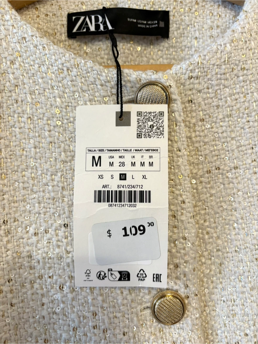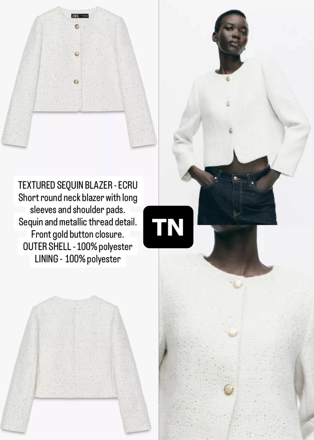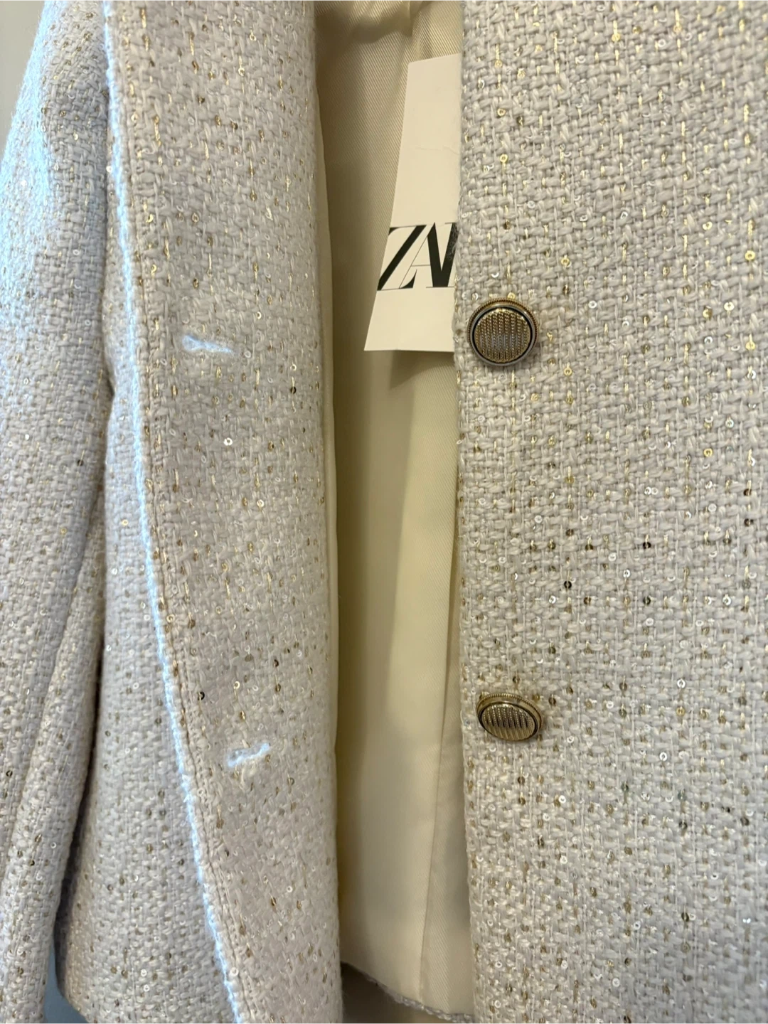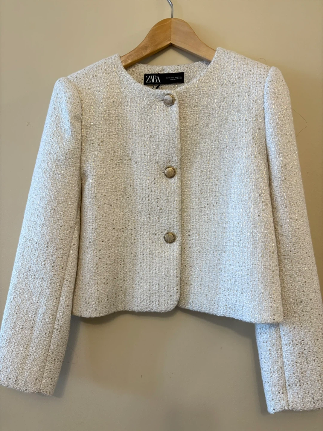 Selling a Zara textured sequin blazer in ecru, size medium!