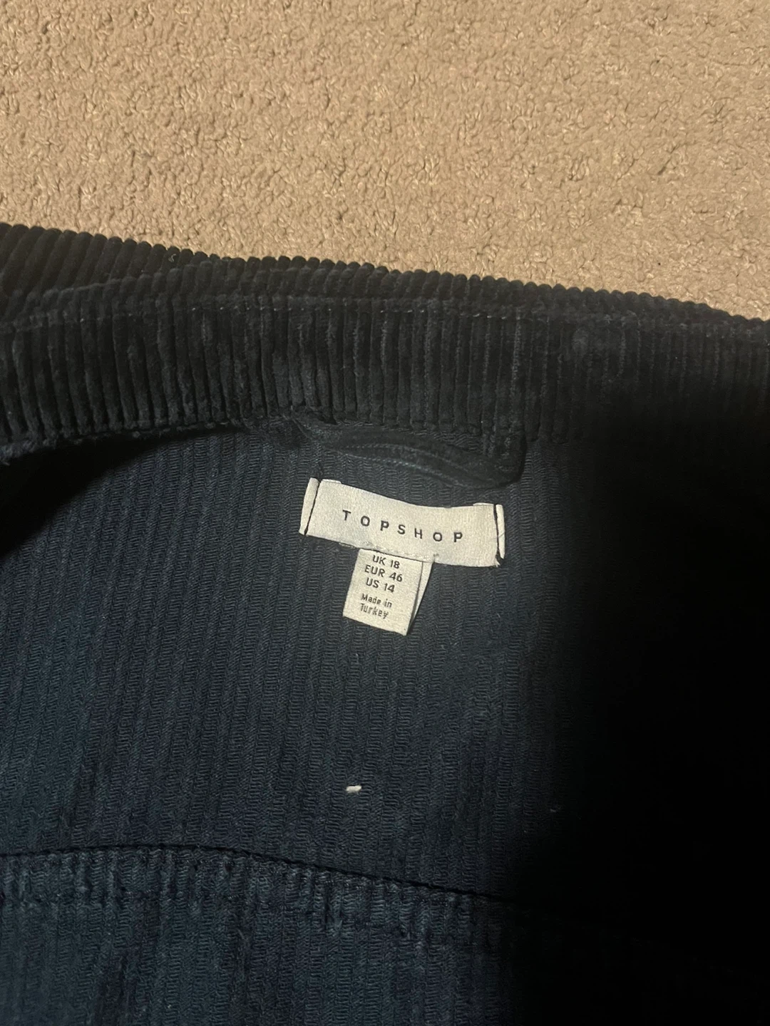 Topshop corduroy jacket in a dark navy colour. It's a size US 14