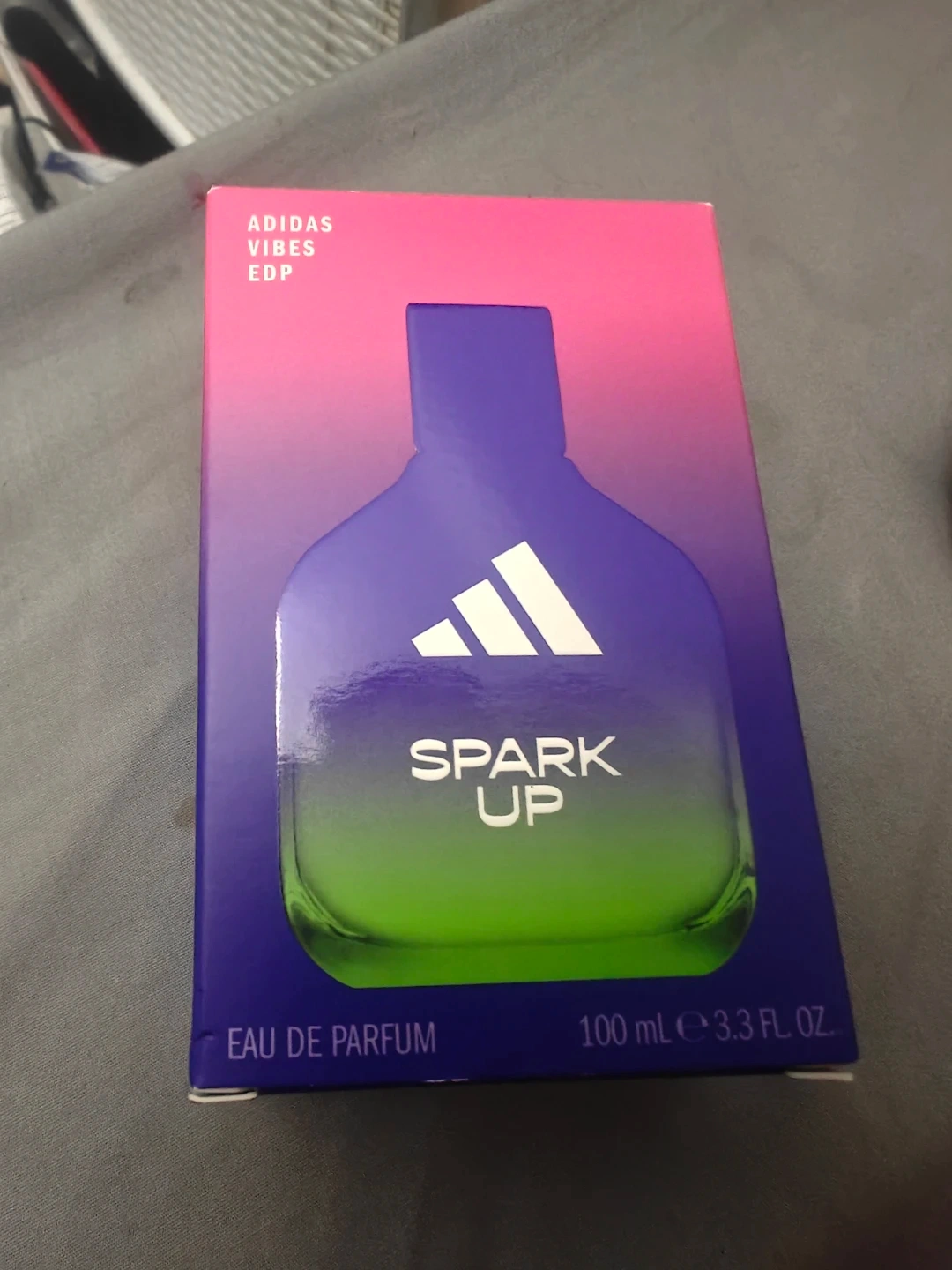This is Adidas Vibes Spark Up Eau de Parfum for women. It's a 100ml bottle. The fragrance is a blend of floral and fruity notes, perfect for everyday wear.