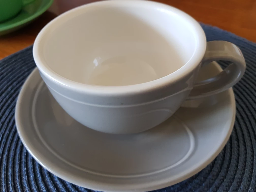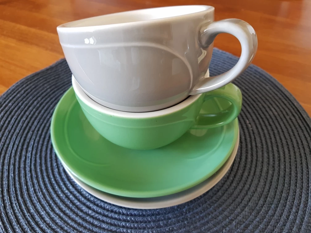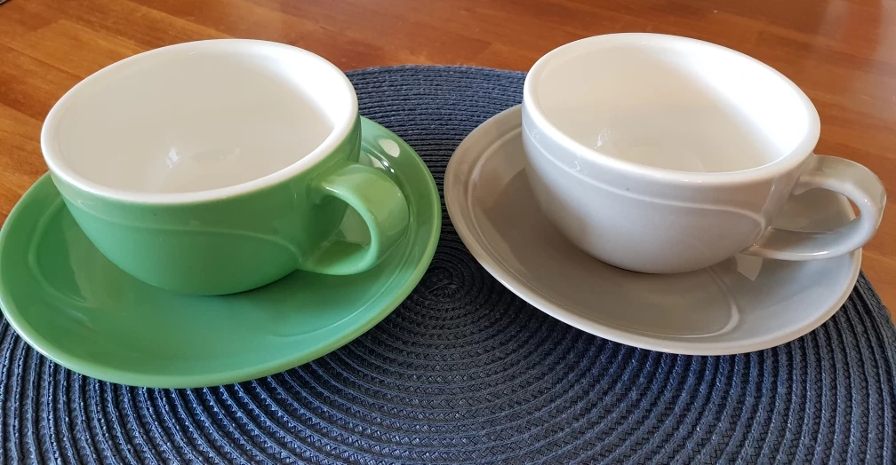 Selling a set of Nobilta cups and saucers! One is a lovely green and the other is a neutral grey.