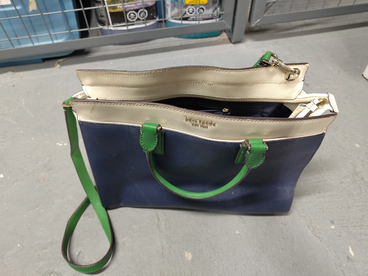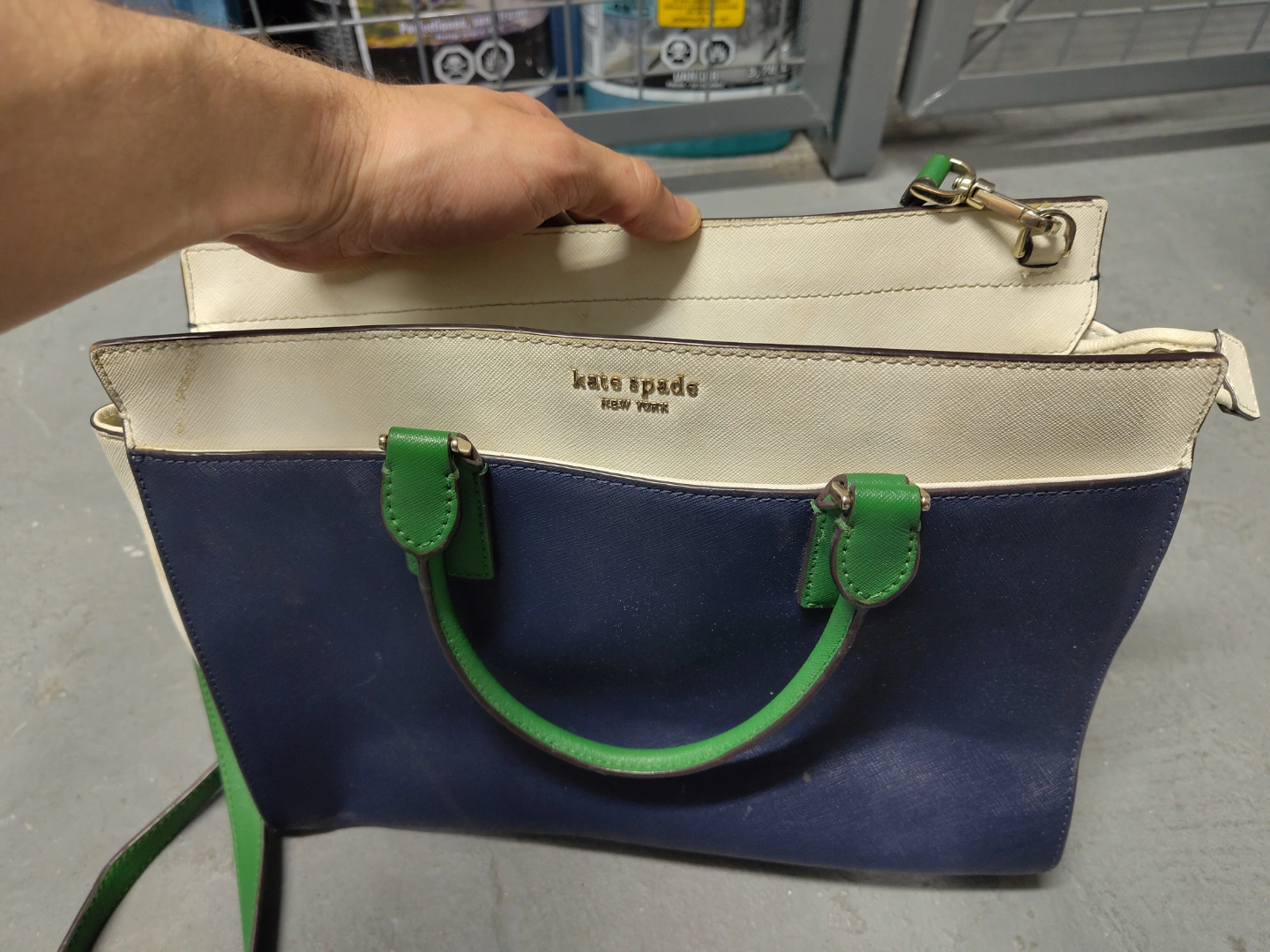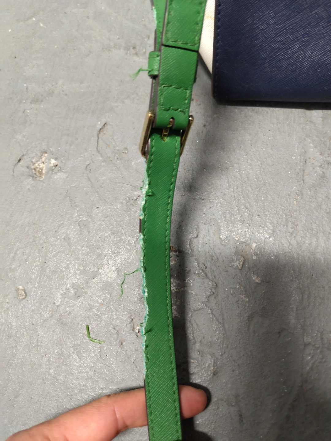 beautiful purse which has unfortunately seen better days. strap is worn and minor discolouration. perhaps someone thriftier than me would still be interested and able to swap out the strap.