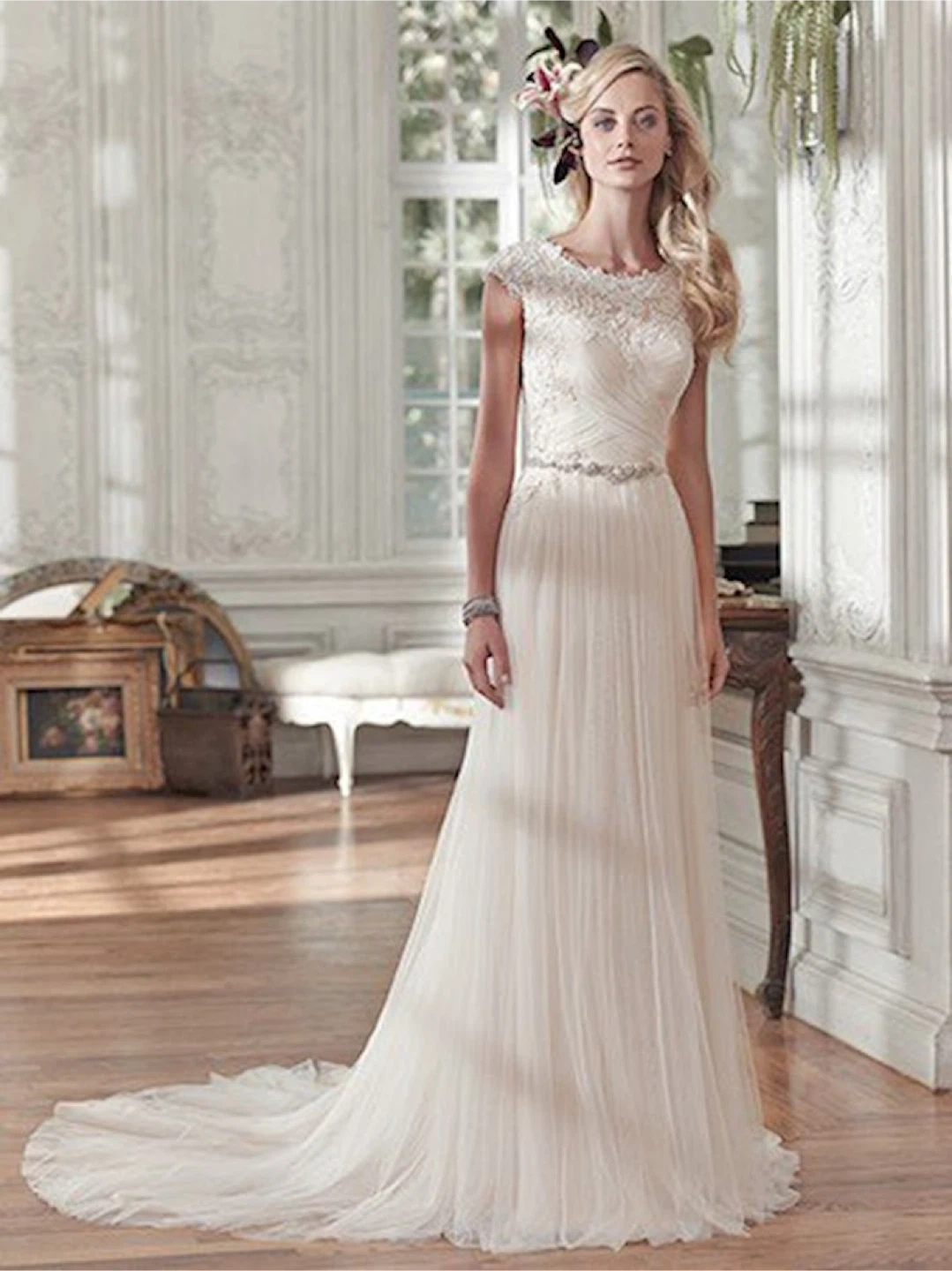 Wedding Dress with Lace Bodice and Tulle Skirt
