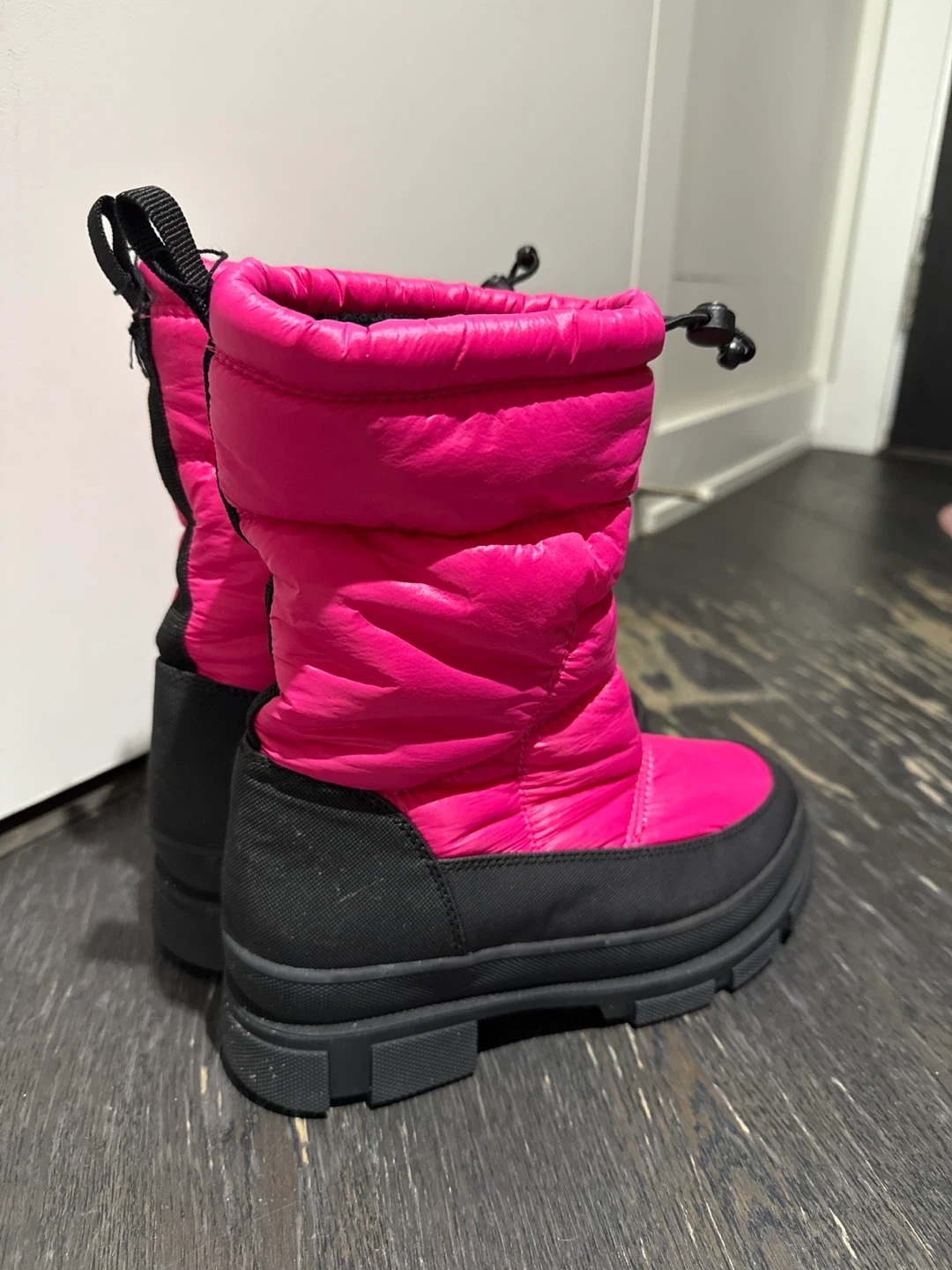 Keep your feet warm and stylish this winter with these Noize winter boots! They are a vibrant pink colour with black accents. Size 6. Very cute and warm. I am selling them because I don’t wear them as much as I thought I would.