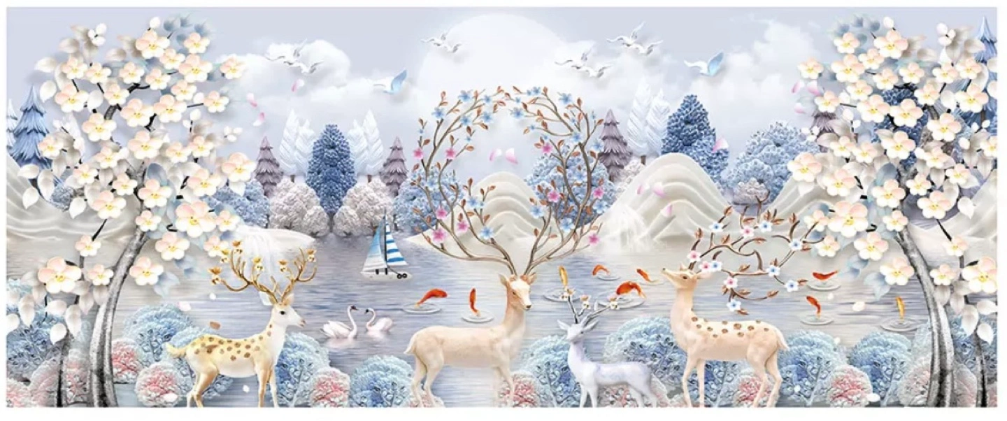Features a serene winter scene with deer and floral trees. Full drill, colour coded symbols for easy completion. Great for crafting and home décor.