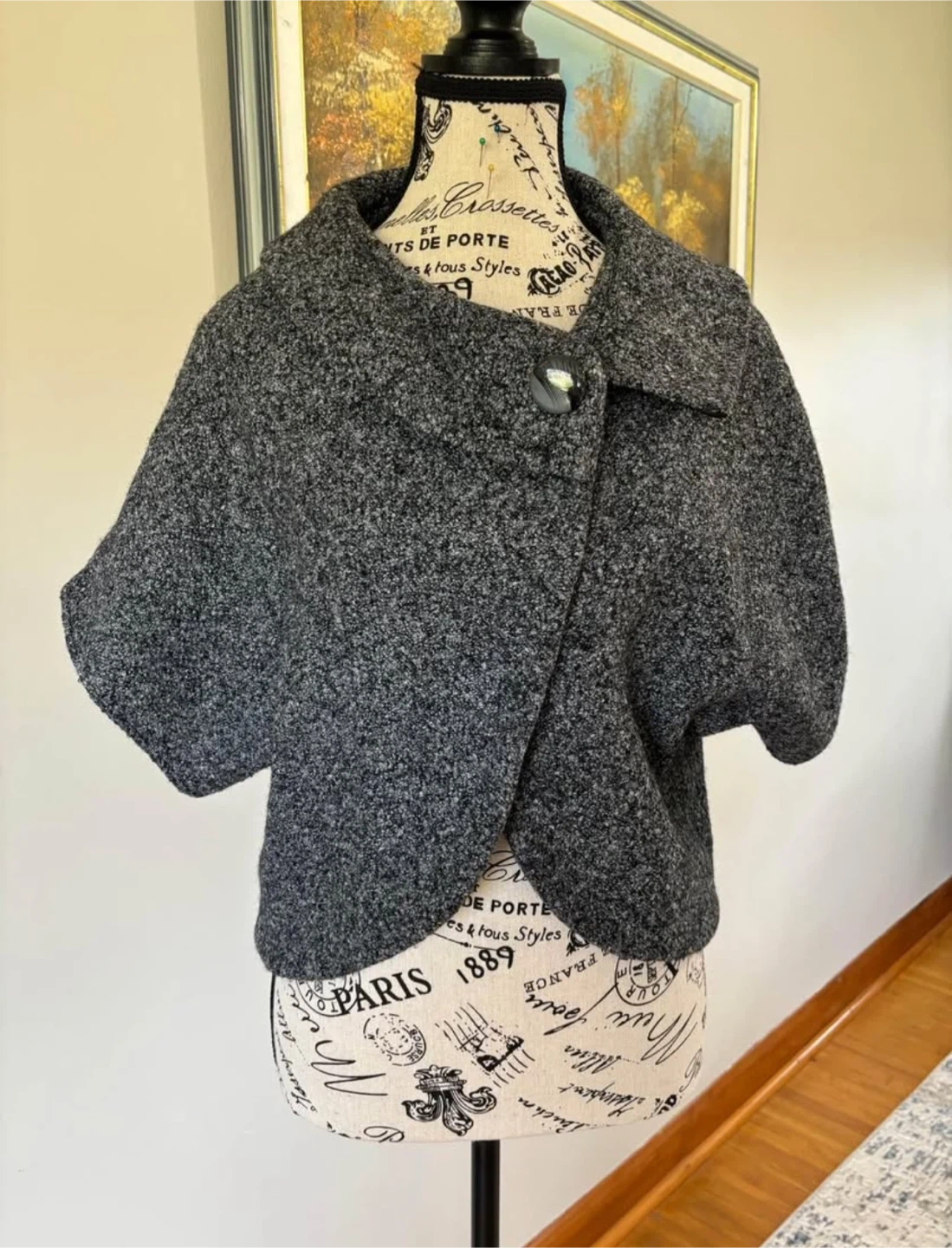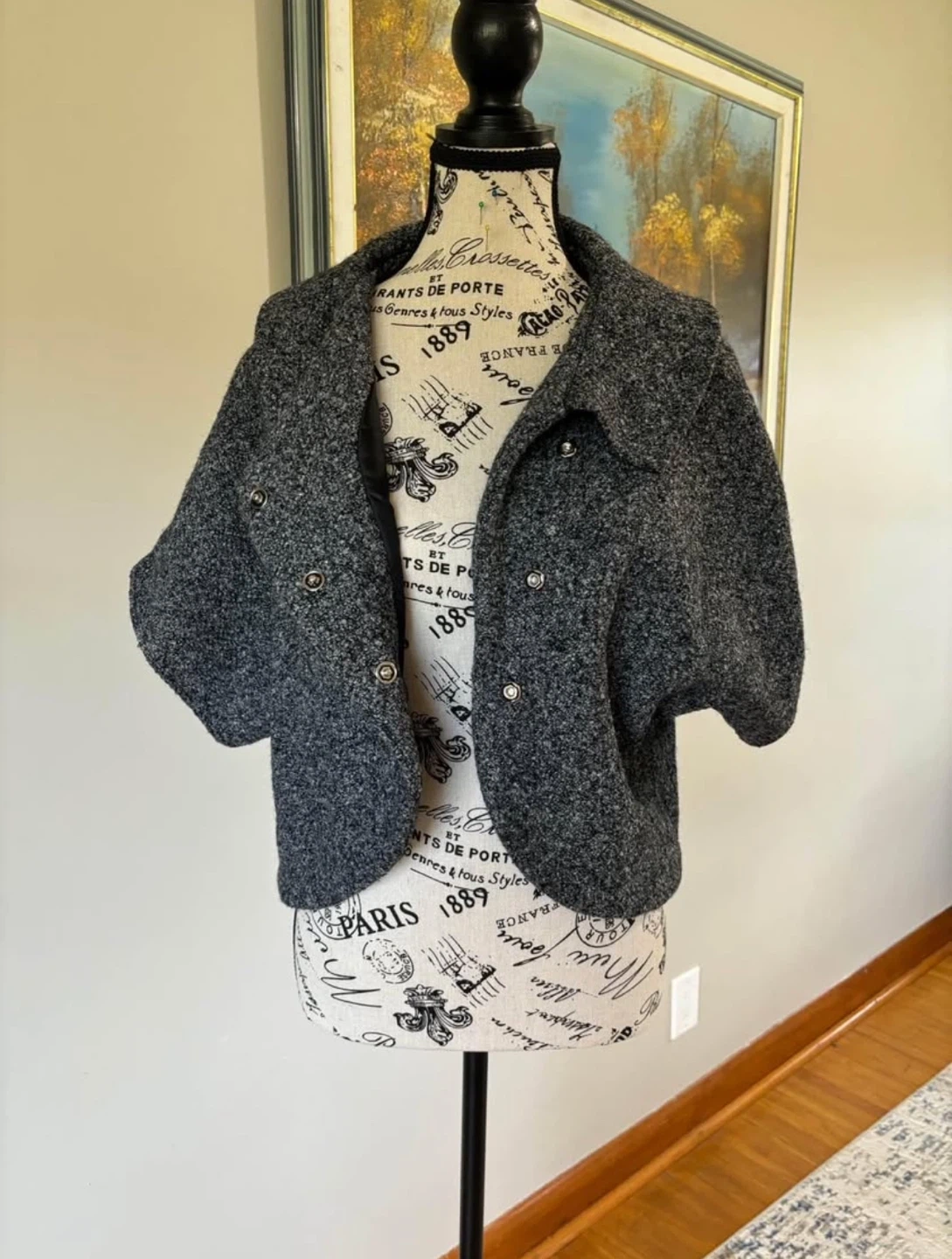 97Here's a stylish Nolousi cropped jacket in a lovely gray colour! It's perfect for layering and adding a touch of sophistication to any outfit