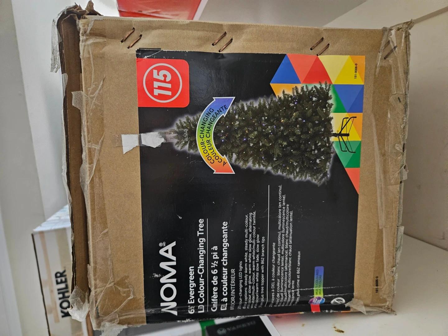 73Selling a NOMA 6ft Evergreen Colour-Changing Tree! It features colour-changing LED lights and a tree topper with slow fade colour twinkle and soft glow branch tips. The box is included
