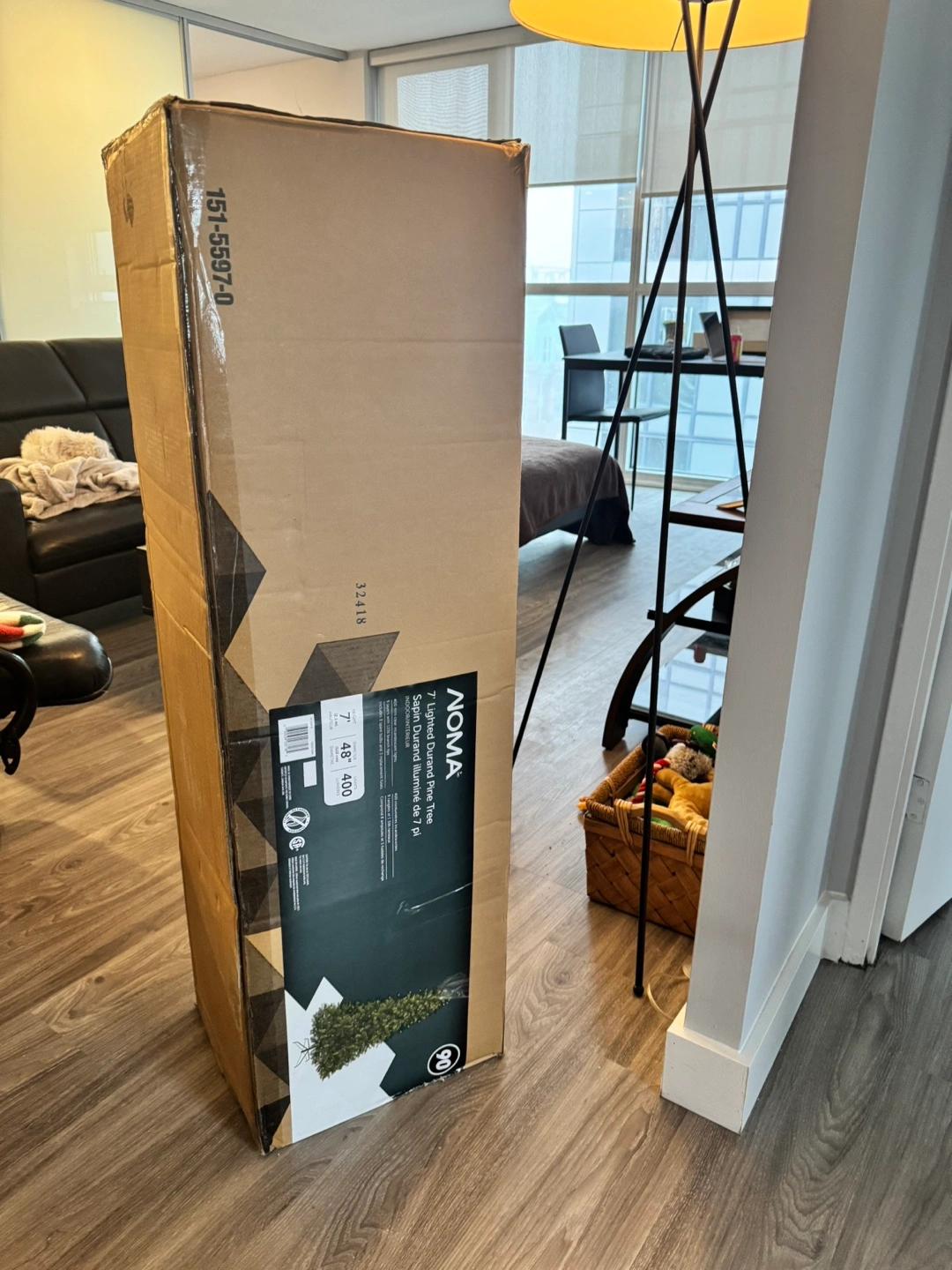 Selling a NOMA 7 ft Pre-Lit Flocked Christmas Tree. It's in great condition and comes with the original box! This tree will add a festive touch to your home during the holidays