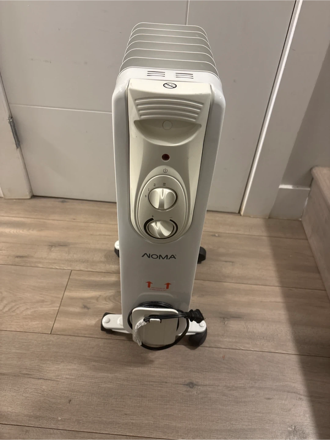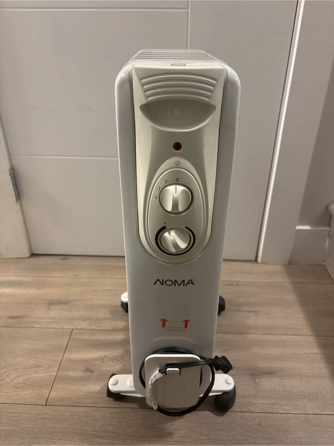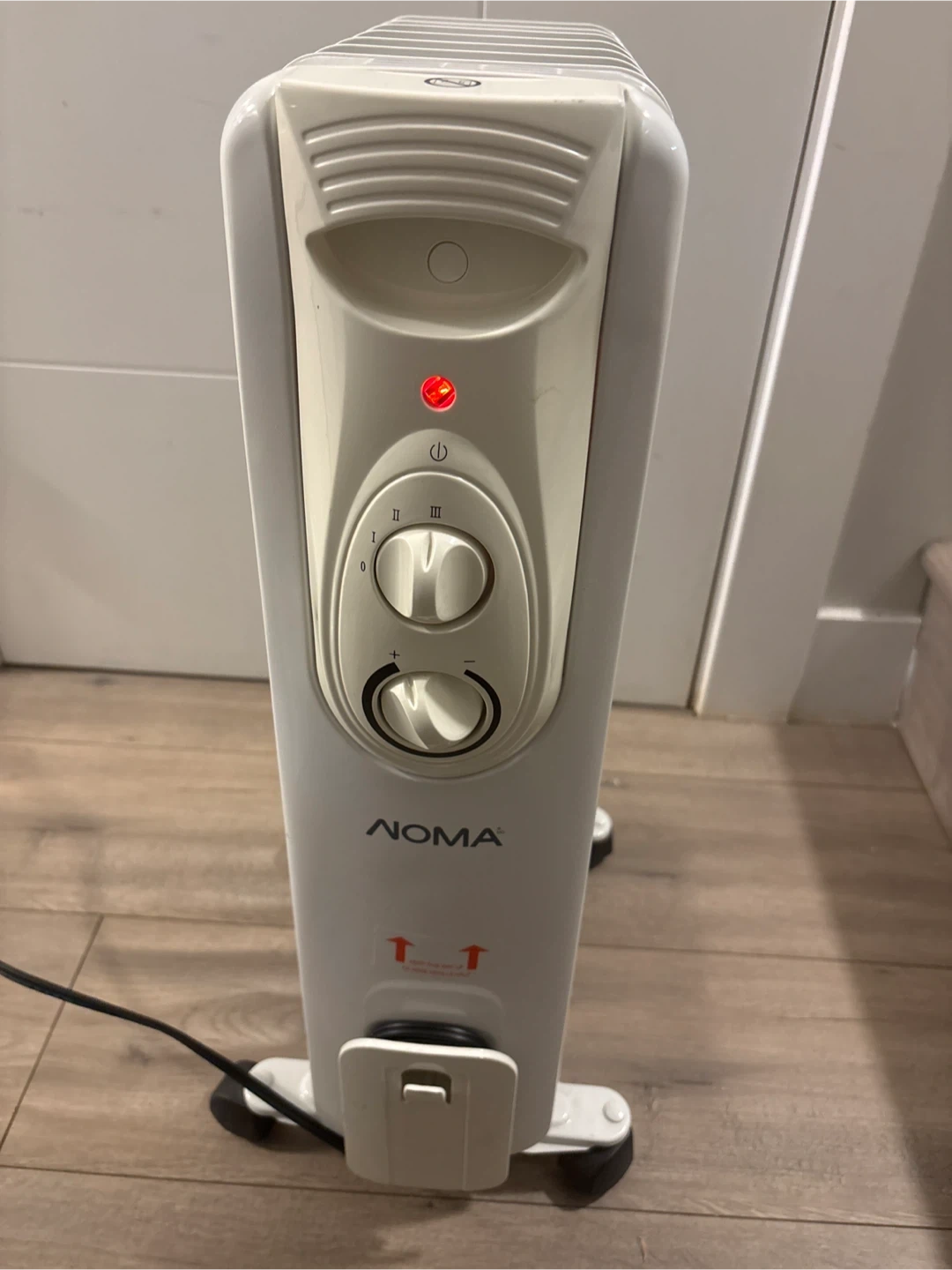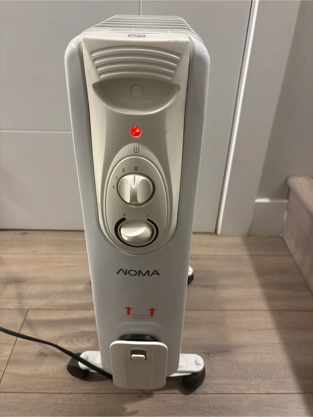 98Selling a Noma oil-filled radiator heater. It's in great condition and ready to keep you warm this winter! It features adjustable temperature settings and is easy to move around thanks to its wheels