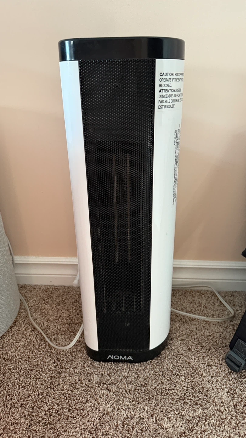 168Selling a Noma Oscillating Ceramic Tower Heater with Fan. It's in great shape and ready to keep you warm this winter! The model number is 3068797. It's an oscillating ceramic tower/baseboard heater with fan. Can preset temperature and timer. Pickup in Tuscany area. Price is firm. Cash only.