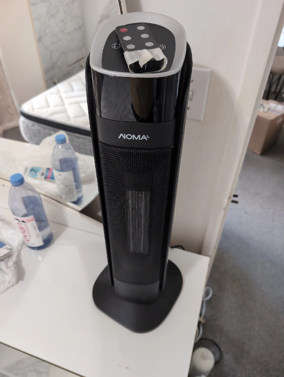64Keep cozy with this NOMA tower heater! It's in great shape and ready to warm up your space. It's black and comes with a remote control