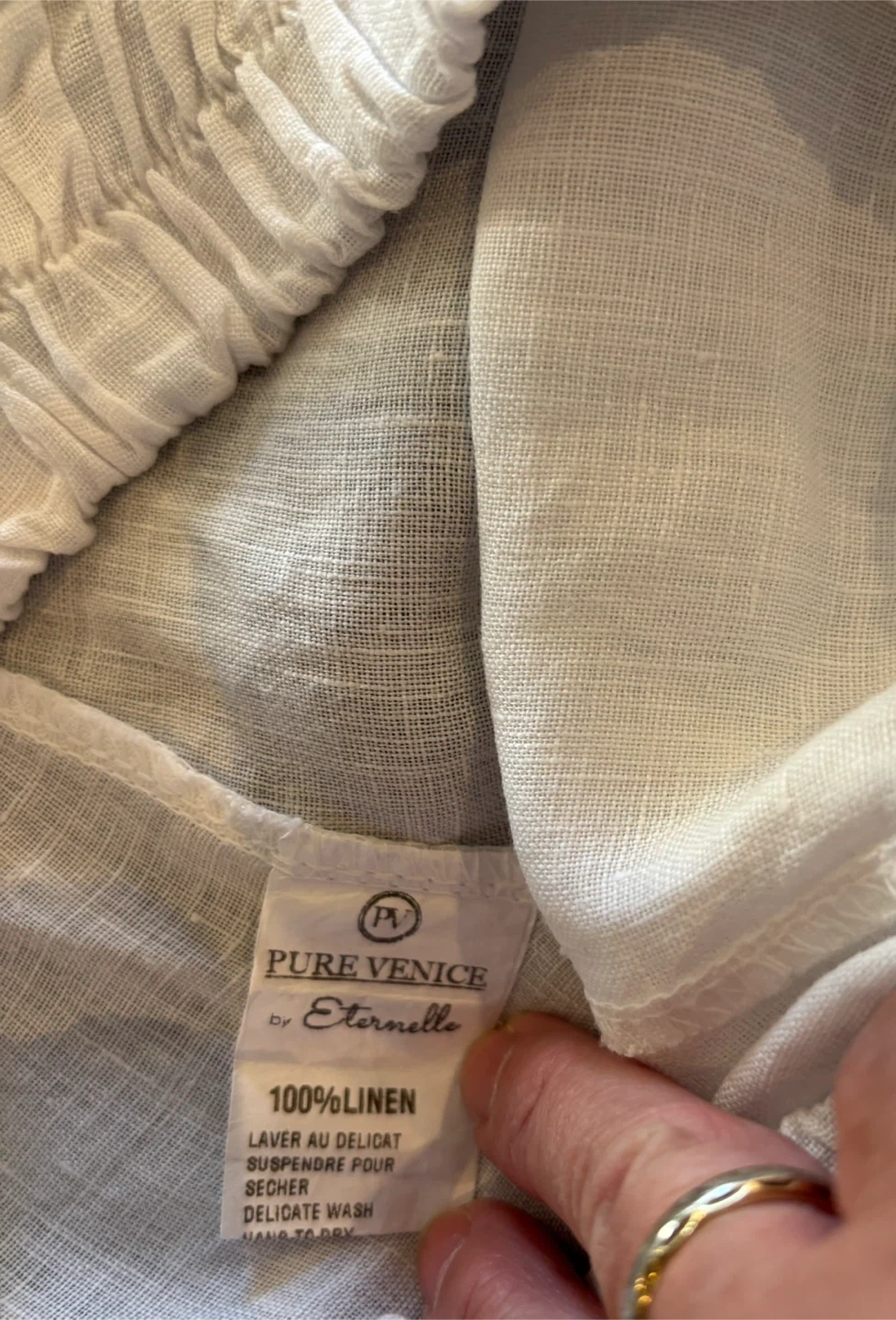 Pure Venice, made in Italy white crop linen pants, with nice button details. About 24” inseam, in the excellent condition. Size small. Machine wash in cold water.