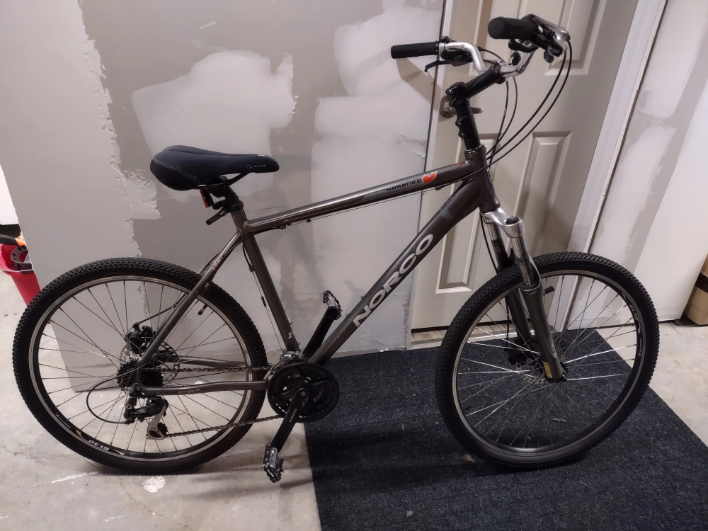 10Selling a Norco Kokanee bike, circa 2007. It needs some TLC. Rear Tire needs a new tube, will not hold air. Shimano gears, front derailleur needs tuning. Hayes Mechanical disc brakes. Suntour suspension fork, cruiser style riser handlebars. 20" Aluminum frame will fit someone 5'6" to 6' or so. Bike will be rideable if tire tube gets replaced and gears get some setup. Could be made into a great bike again with some effort. Sold As is.