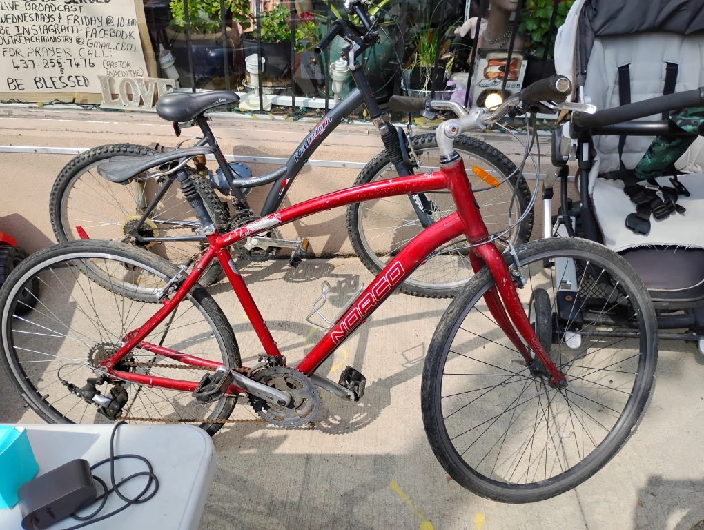 10Selling a red Norco bicycle. this is an 18.5 in Norco custom 7005 alloy the tires are quick release the bike isn't working order it's interested private message for more details