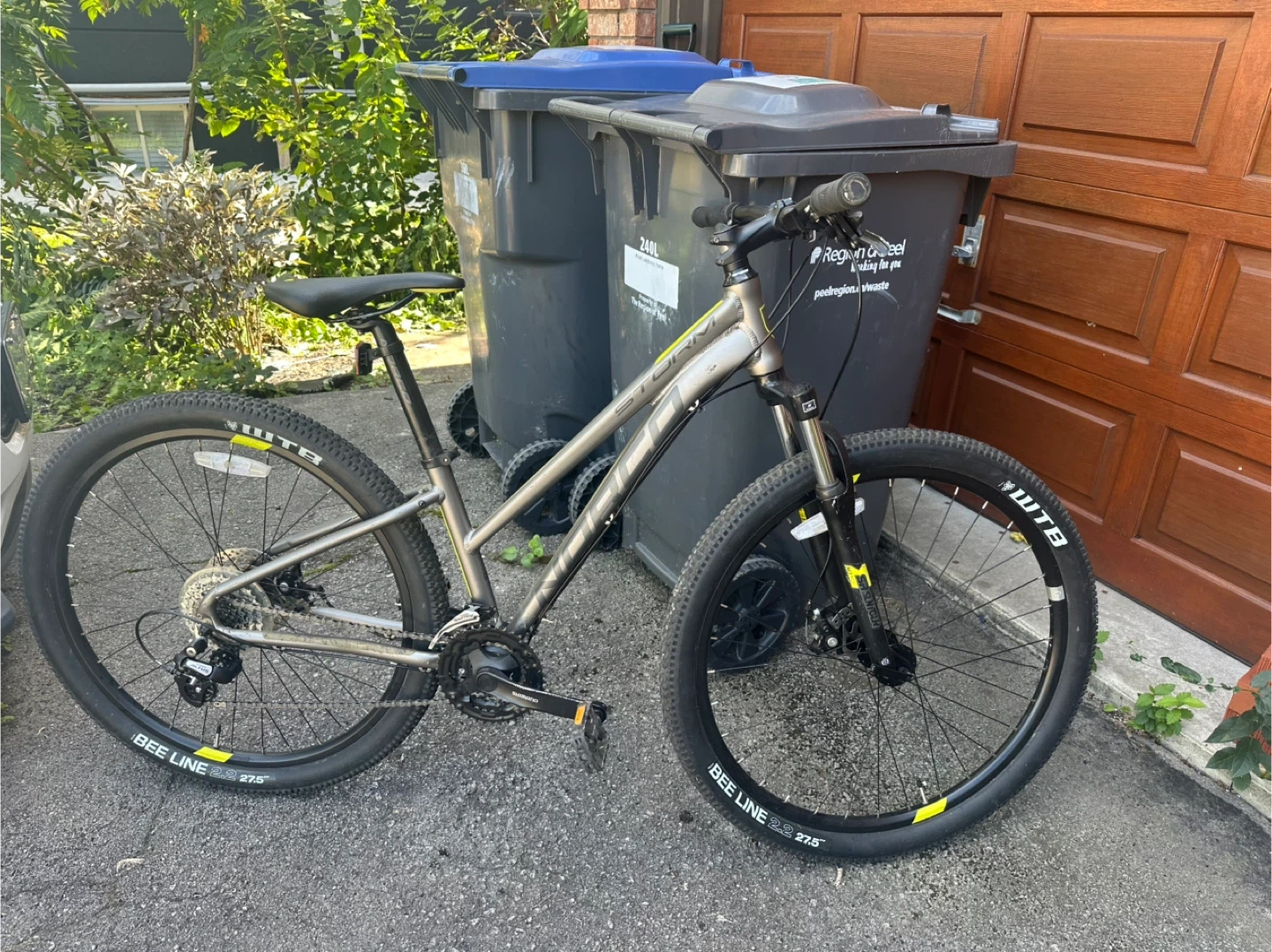 43Selling a Norco Storm mountain bike in a stylish silver and yellow colour scheme! The tires are Bee Line 27.5. This bike is ready for some off-road adventures!