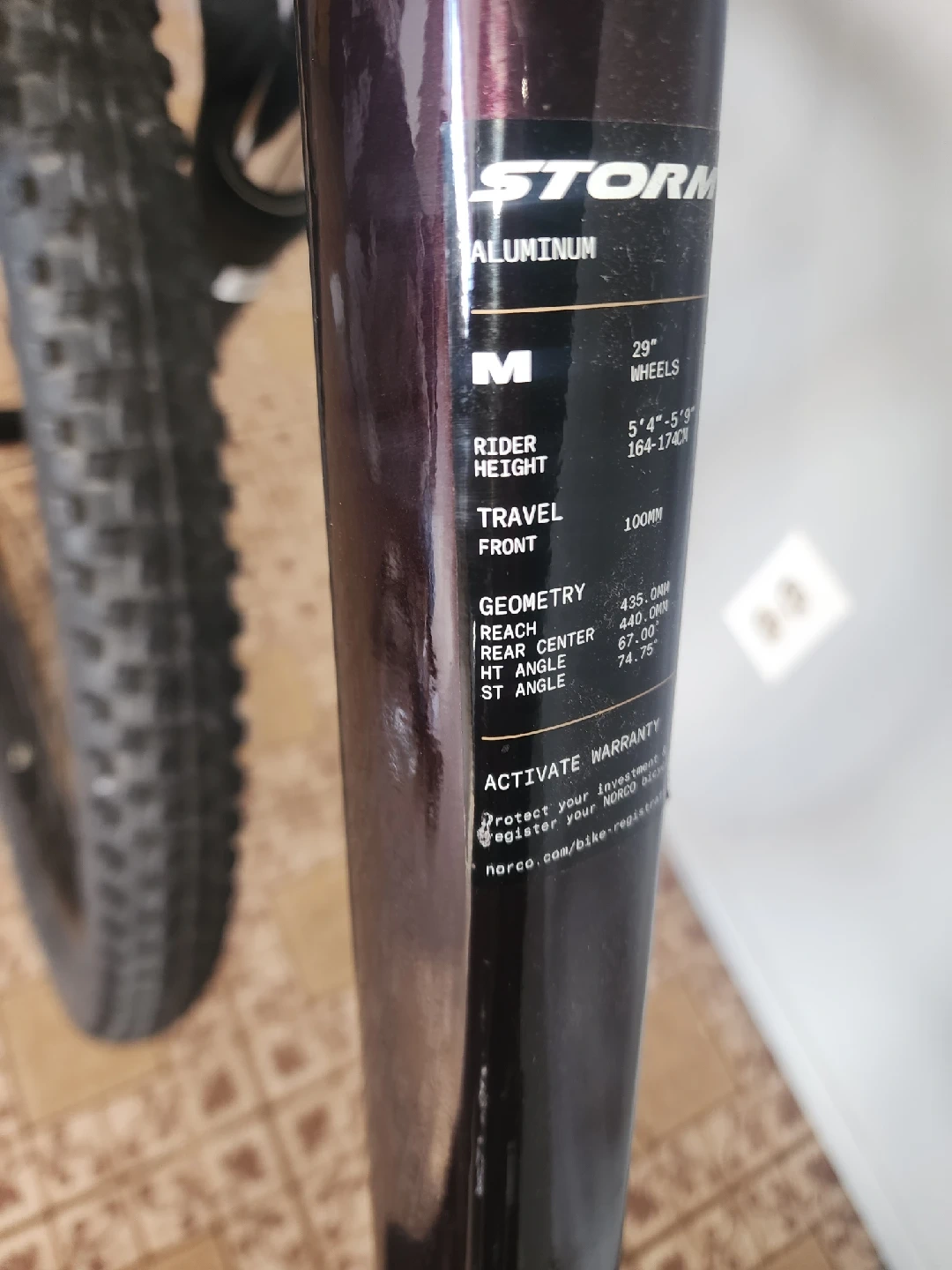 80Selling a Norco Storm mountain bike in great shape! It has 29" wheels and is a size medium. The tires are 29x2.25/54-622. It's a great bike for hitting the trails or just cruising around town, bought from western cycle, paid $899.99 asking $400.