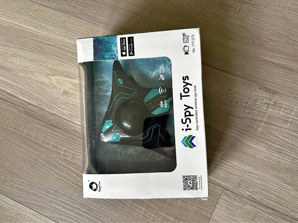 Mini wifi remote control underwater camera boat. Product size: 19*15*6cm. Lithium battery 3.7V/250mAh. Charging time: About 45 minutes. Driving time: About 15 minutes. Remote control distance: about 15 meters. Charging method: USB cable charging. Age: 8+. Features: Forward, backward, left turn, right turn, camera (10 meters), real-time transmission. Package list: 1*RC Ship, 1*Charging line, 1*Instructions. To use, download the app, place the boat in water, connect to the boat's WiFi in your phone's settings, and then open the app to control the boat.