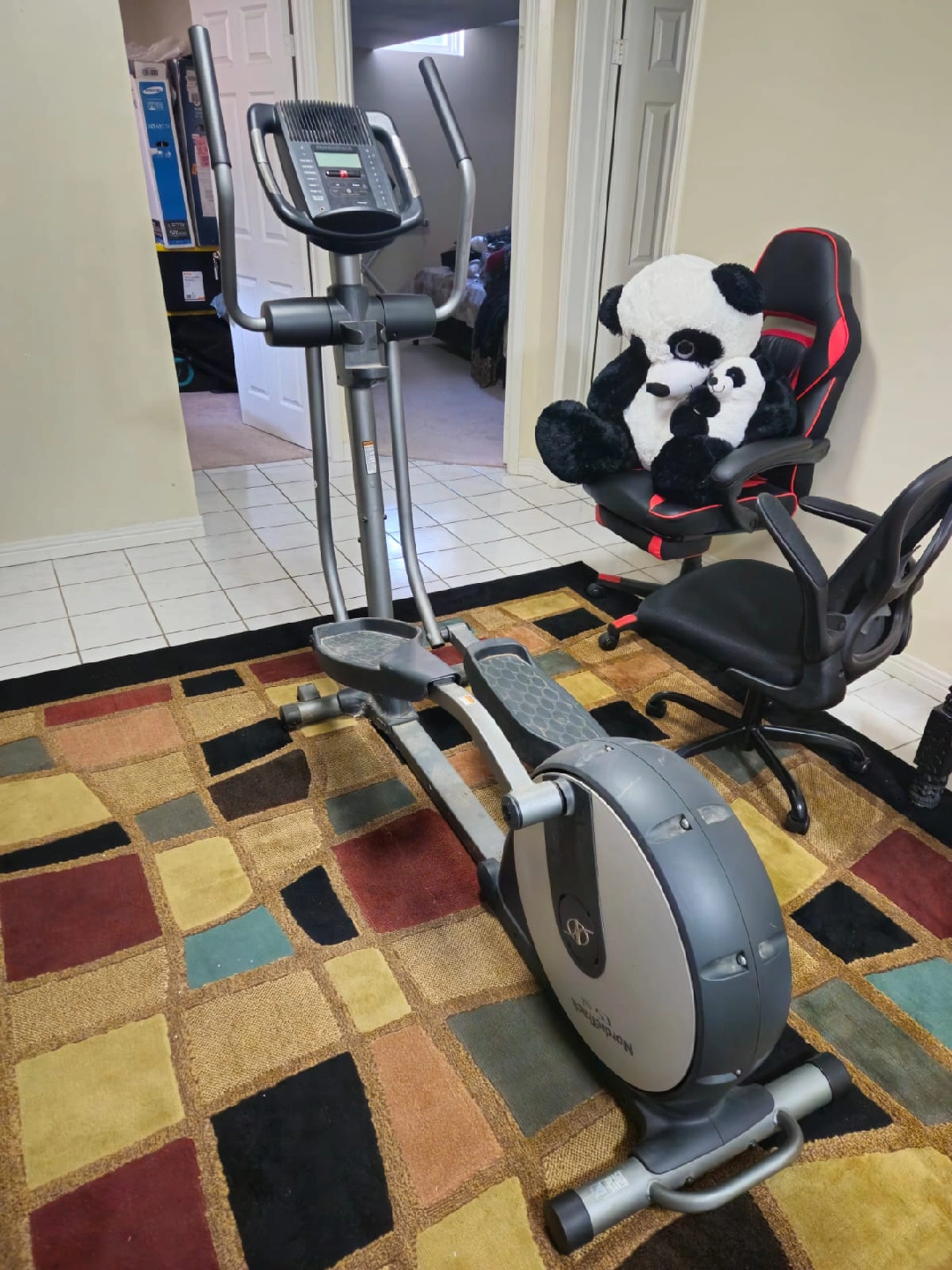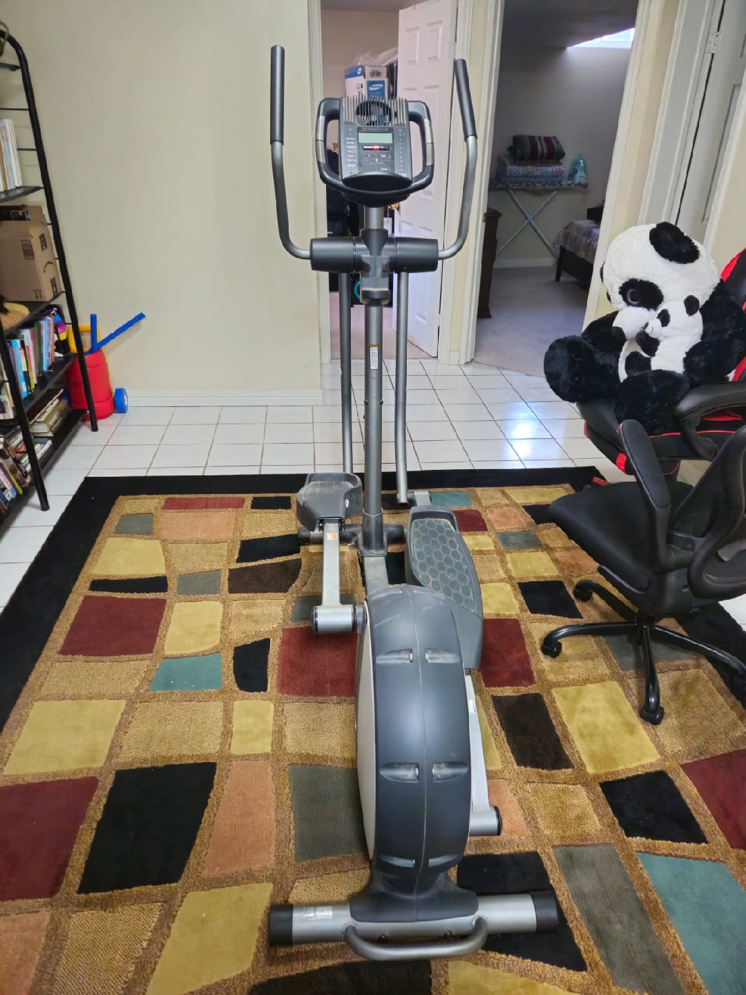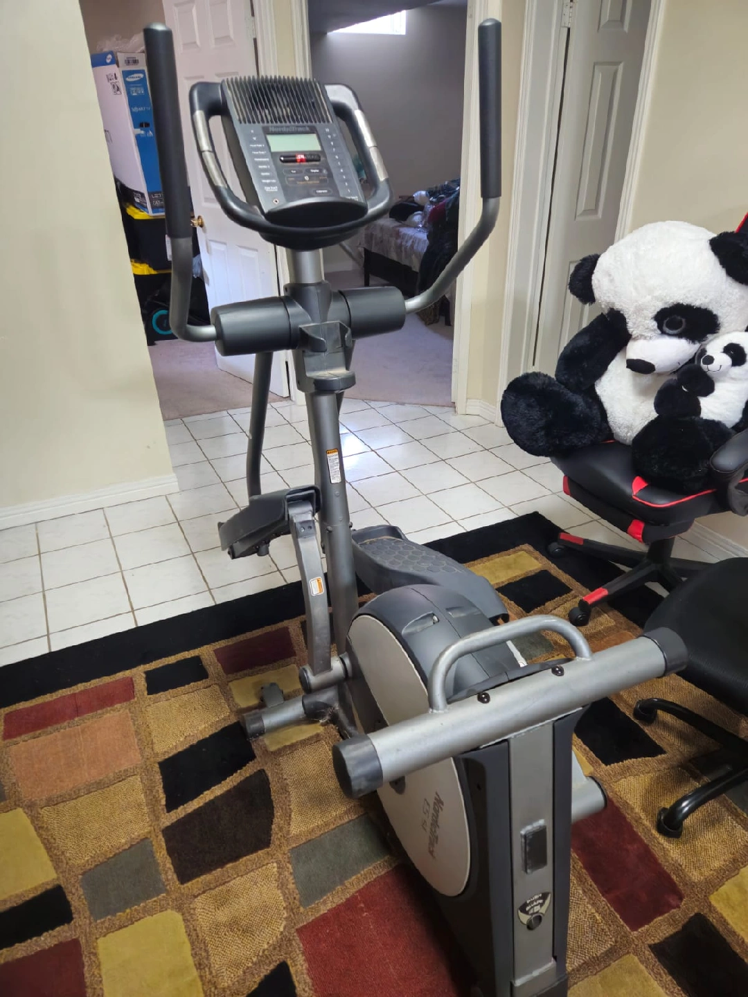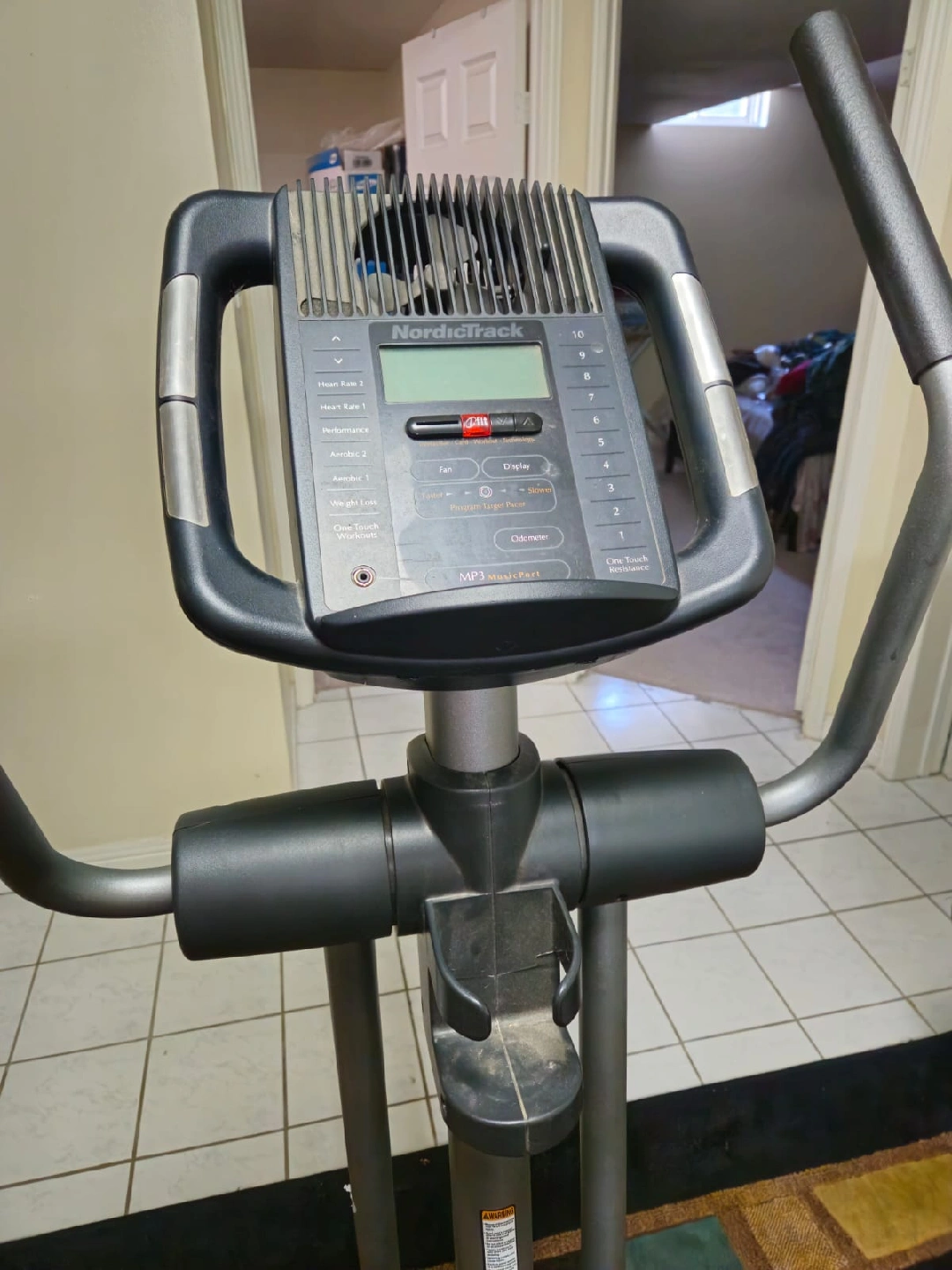 Selling a NordicTrack elliptical machine in good condition. It features a display screen and various settings for heart rate, performance, and weight loss programs. It also has a built-in fan and MP3 music port for your workout enjoyment!