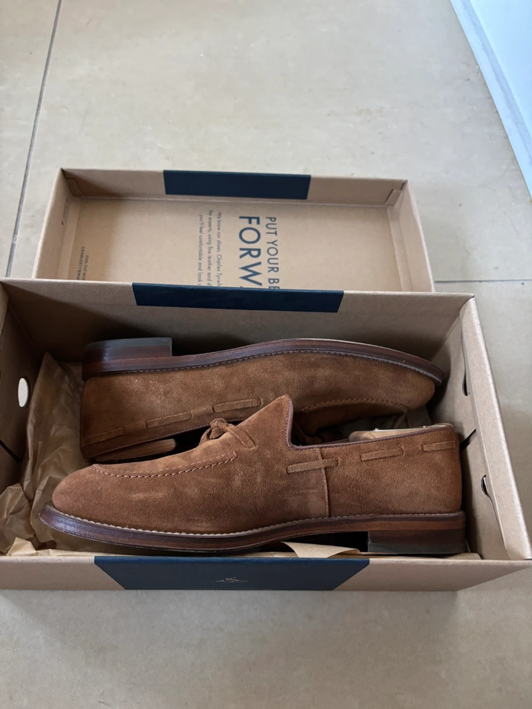 10Here are some gently used Nordstrom tassel loafers! They are a chestnut brown colour and come in size US 8. These stylish shoes are made of suede and come with the original box, perfect for any occasion!