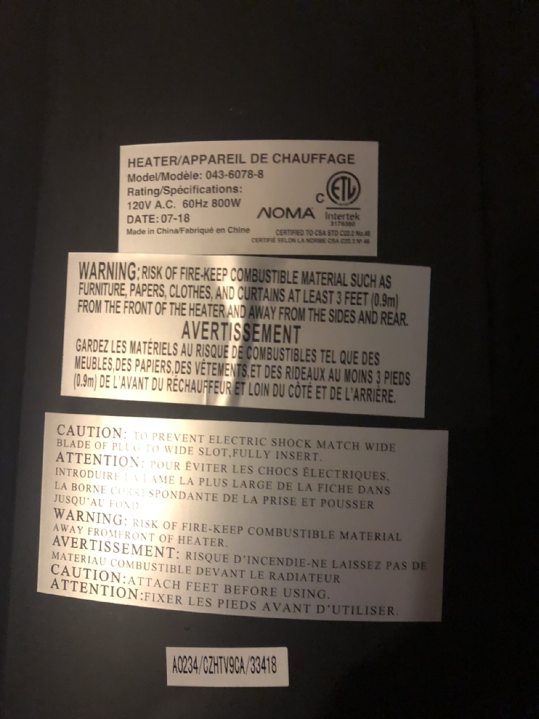 204It’s Noma space heater available in Canadian tire store. Works well warm up the room within minute Pick up at north York area All sales are final