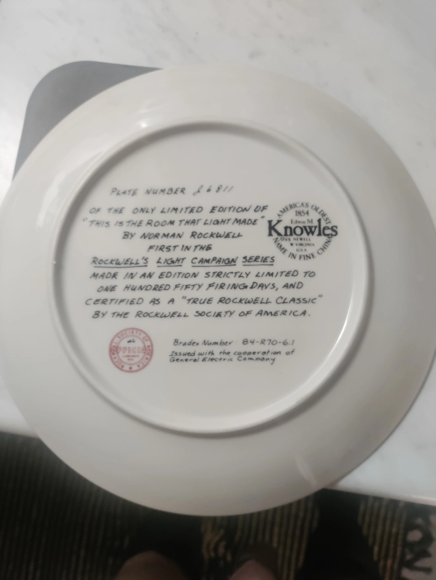 Selling a Norman Rockwell collector plate from the Knowles series. It's titled "This Is The Room That Light Made" and is part of the Rockwell's Light Campaign Series. Plate number is 46811. It's a beautiful piece for any collector!