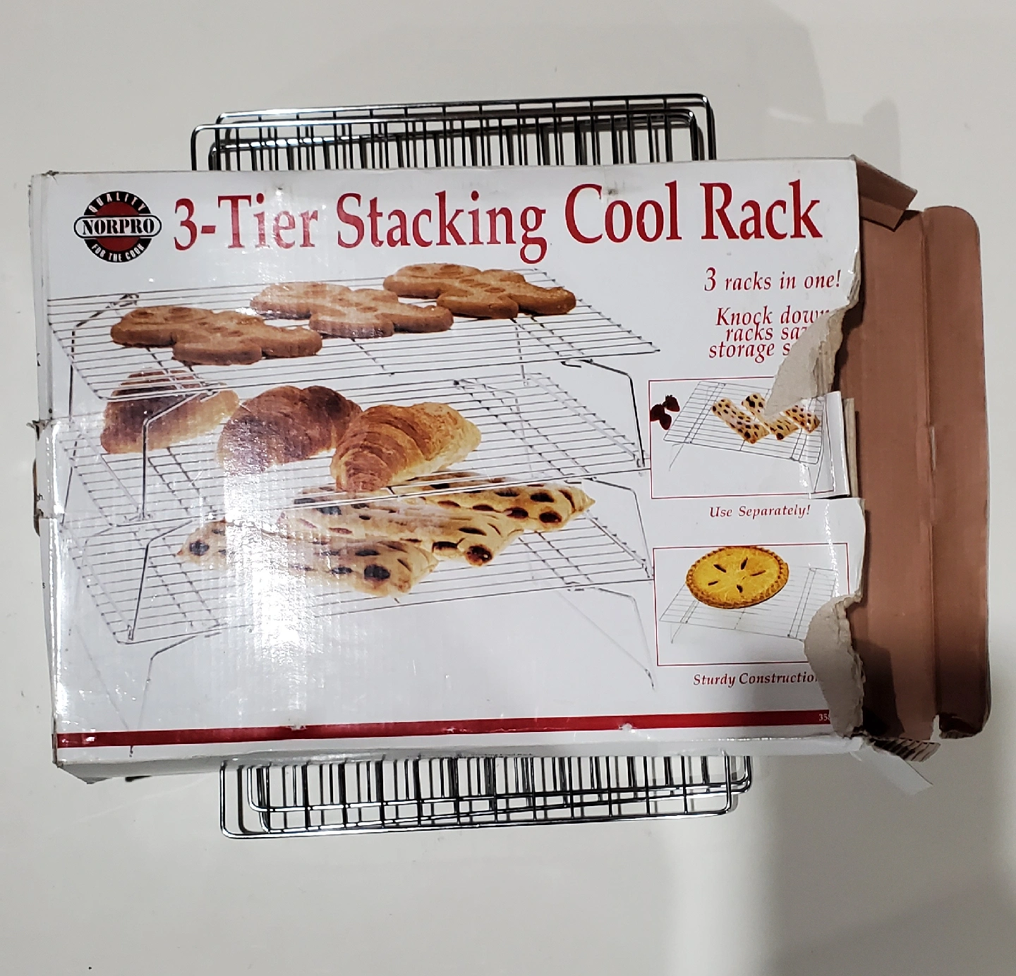97Selling a brand new, Norpro 3-Tier Stacking Cool Rack! It's in great shape and comes with the original box. This rack is perfect for cooling multiple items at once, saving you valuable counter space. The sturdy construction ensures stability for all your baking needs. original box has wear but never used.