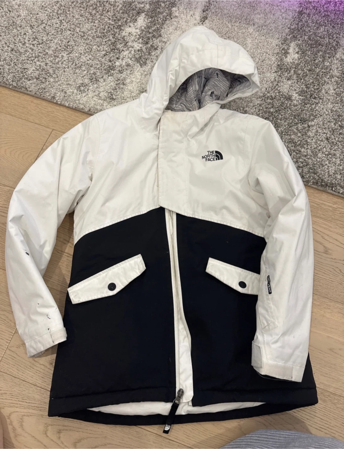 10Selling a The North Face girls' Freedom insulated jacket in a stylish white and black colour block design. A great skiing or snowboarding jacket, is also perfect as an everyday jacket that keeps warm and dry during outdoor activities. It features a hood and pockets for added convenience. Size: 10 girls