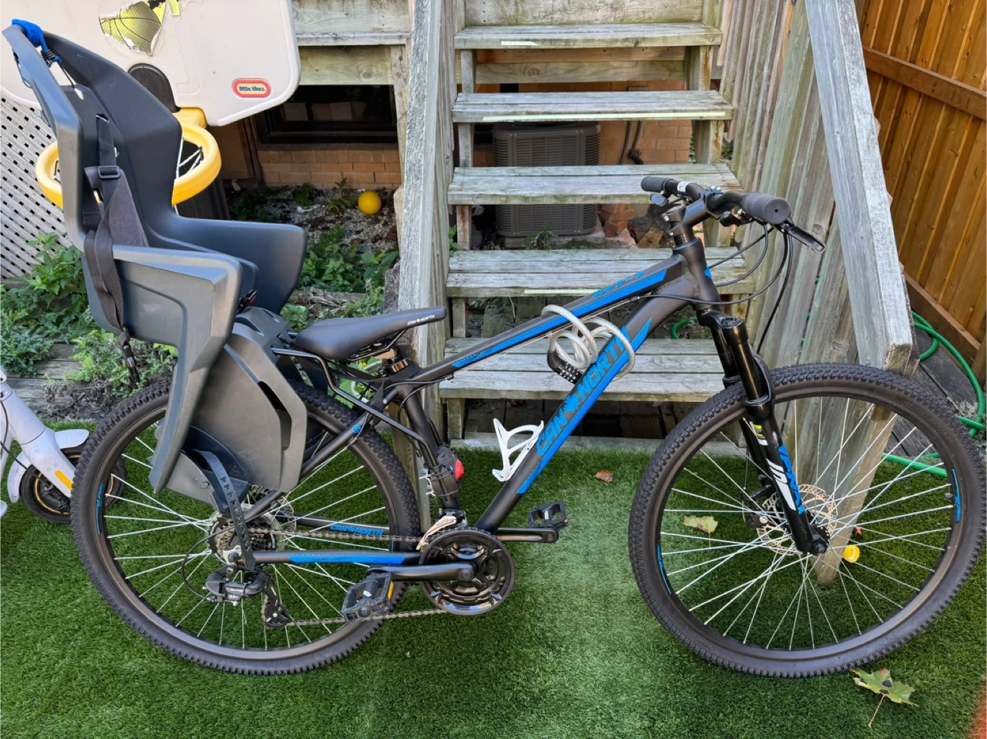 Selling a Supercycle Hammer 2.0 mountain bike in good condition. It comes with a Shimano Tourney derailleur and V-brakes. Child seat so you can bring your little one along for rides! (Sold separately)