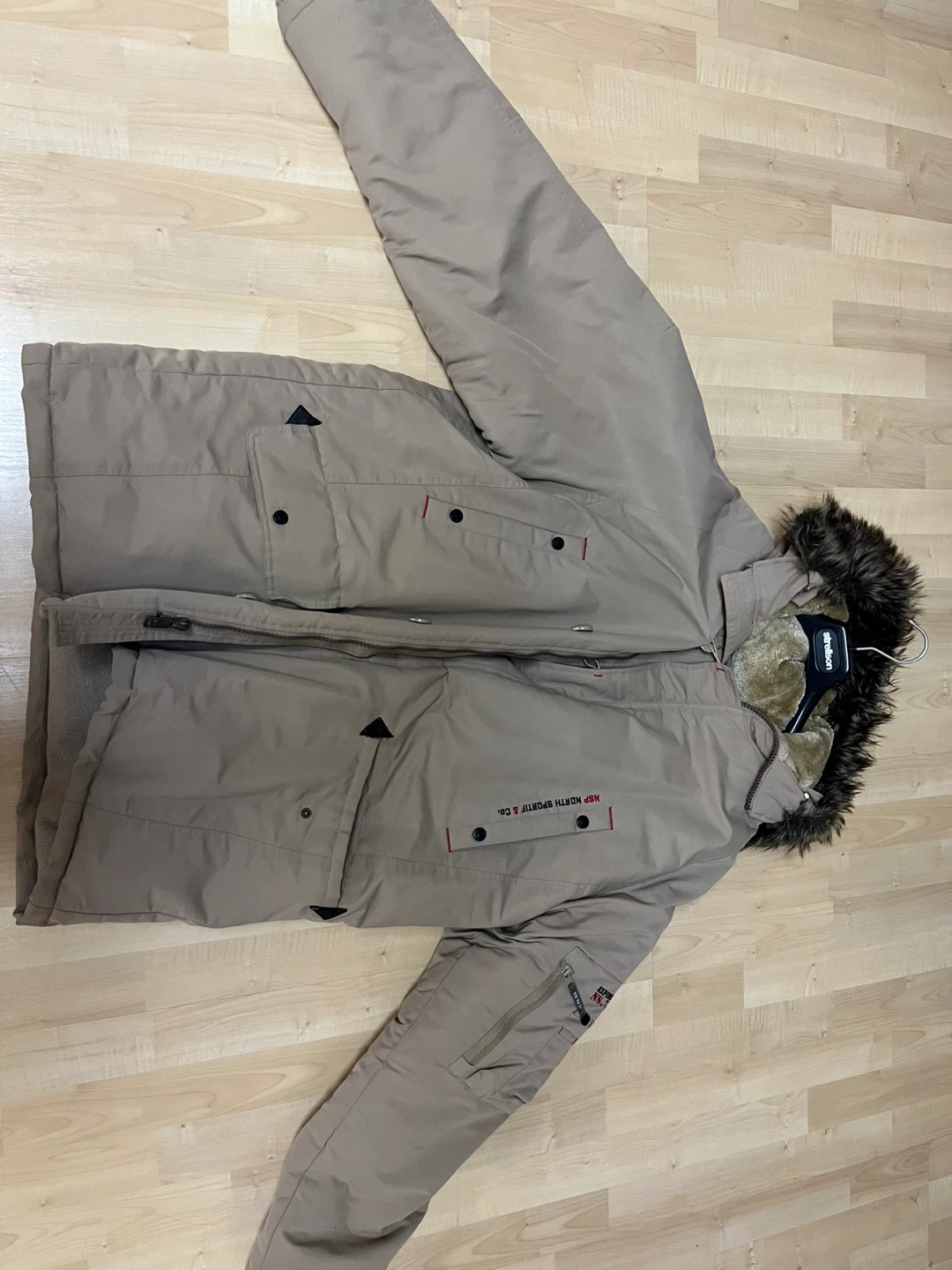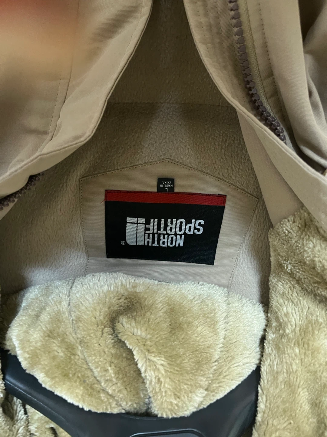 Selling a North Sportif winter jacket in beige, size large. It's in great condition and perfect for the cold weather! The jacket features a faux fur-trimmed hood and a cozy lining to keep you warm and toasty all winter long