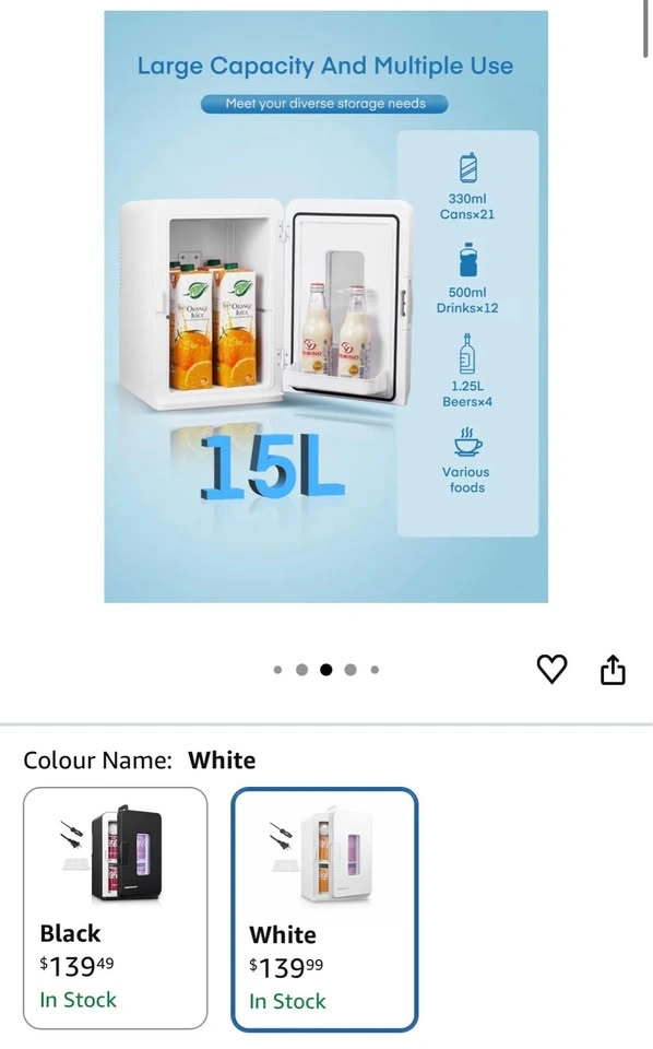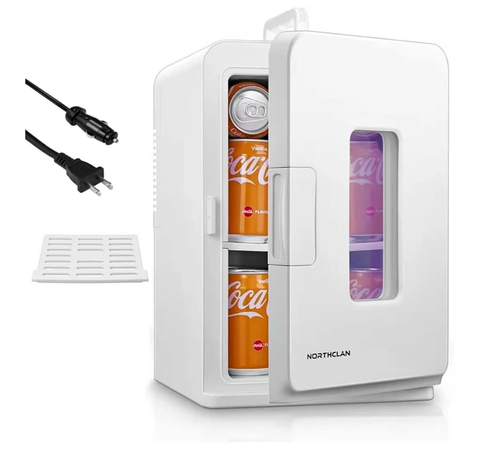 65NORTHCLAN 2-Tier Mini Fridge, 15 Liter/21 Can, 110V AC/ 12V DC Portable Small Fridge, Cooler & Warmer Mini Refrigerators, Small Compact Fridge for Food, Drinks, Makeup (White)