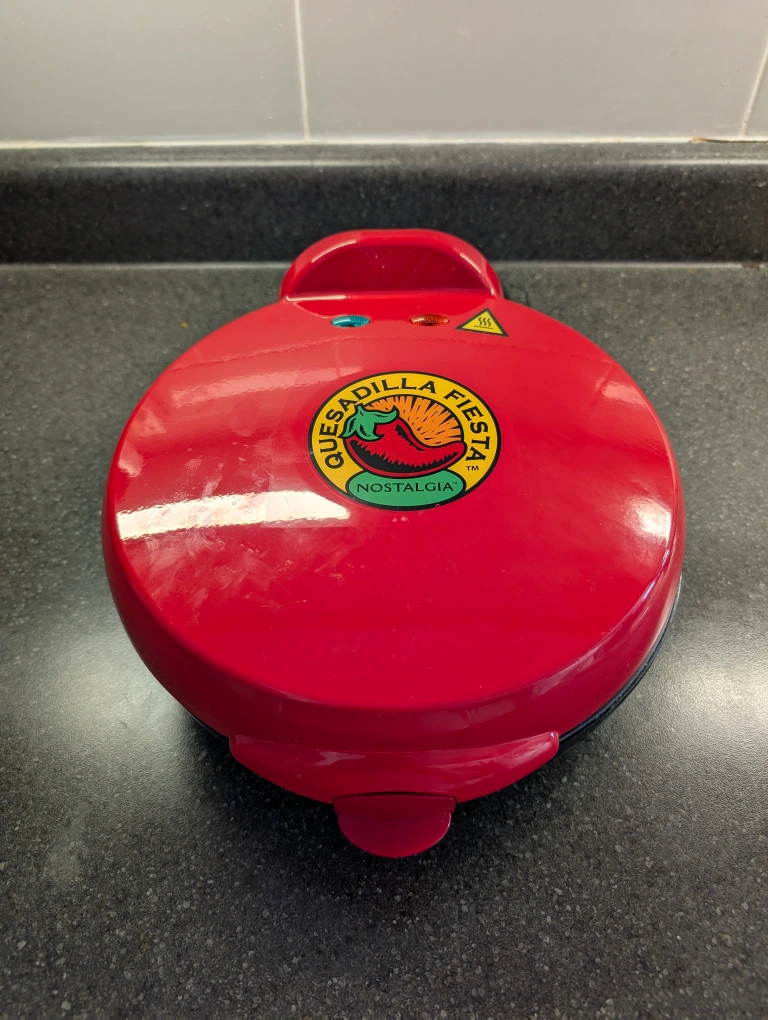 Get ready for a fiesta with this Nostalgia Quesadilla Maker! It's in great shape and ready to help you whip up delicious quesadillas right at home. This is from the Fiesta series, and it's super easy to use. Perfect for quick snacks or fun family meals! pick up only Birchmount and Eglinton