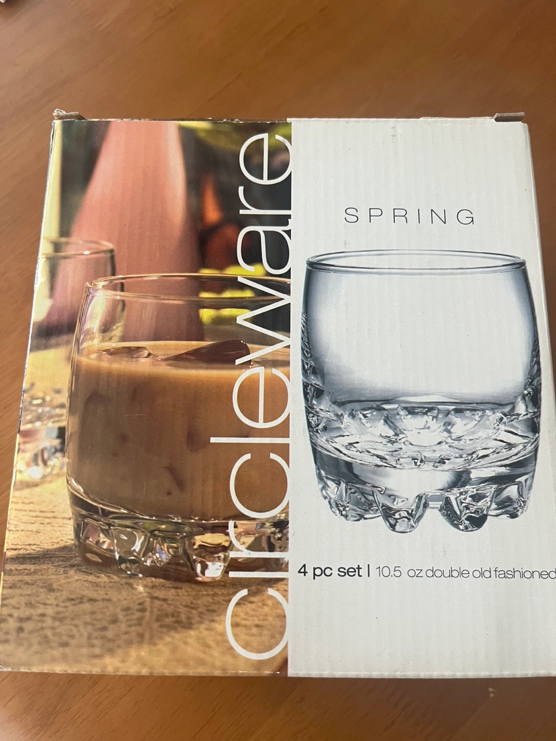 Selling a set of Circleware Spring double old fashioned glasses. This is a 4-piece set, and each glass holds 10.5 oz.
