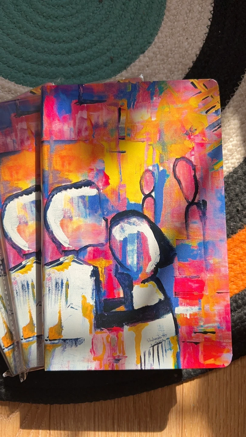 Selling a couple of new notebooks with vibrant abstract art covers. They're still in their original packaging, so they're in perfect condition