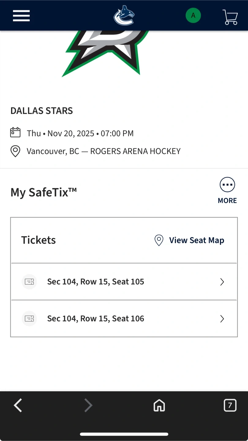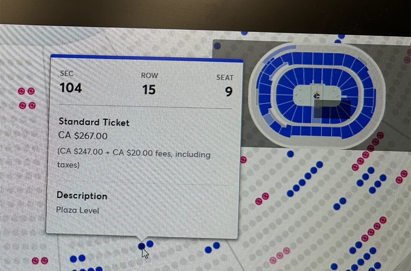 42Selling two tickets to see the Vancouver Canucks play the Dallas Stars on November 20, 2025 at Rogers Arena Hockey! The seats are in Section 104, Row 15, Seats 105 and 106. Standard tickets are CA $267 each (CA $247.00 + CA $20.00 fees, including taxes). $440 including 2tickets+1 parking space