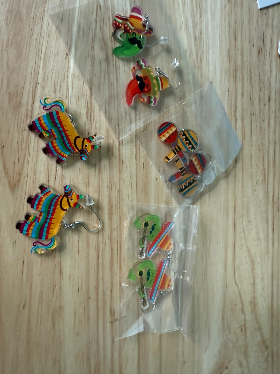 60Selling a set of novelty earrings! There are scissor earrings, Mexican themed earrings and silverware earrings. They are all silver coloured.