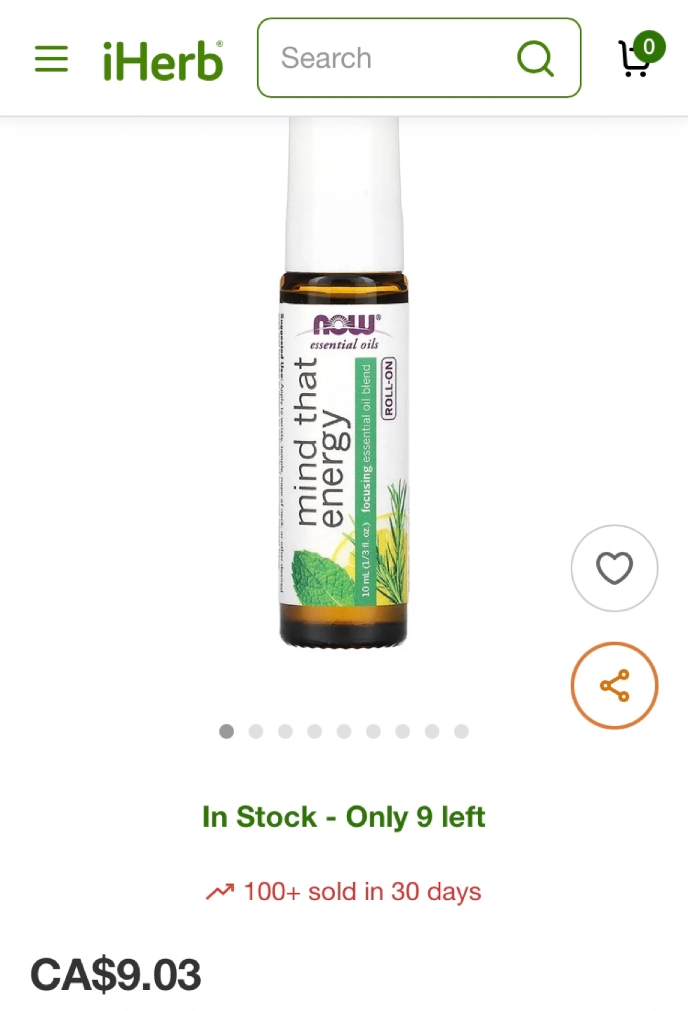 NOW brand ORGANIC Roll-on for Energy, Focus, Refresh