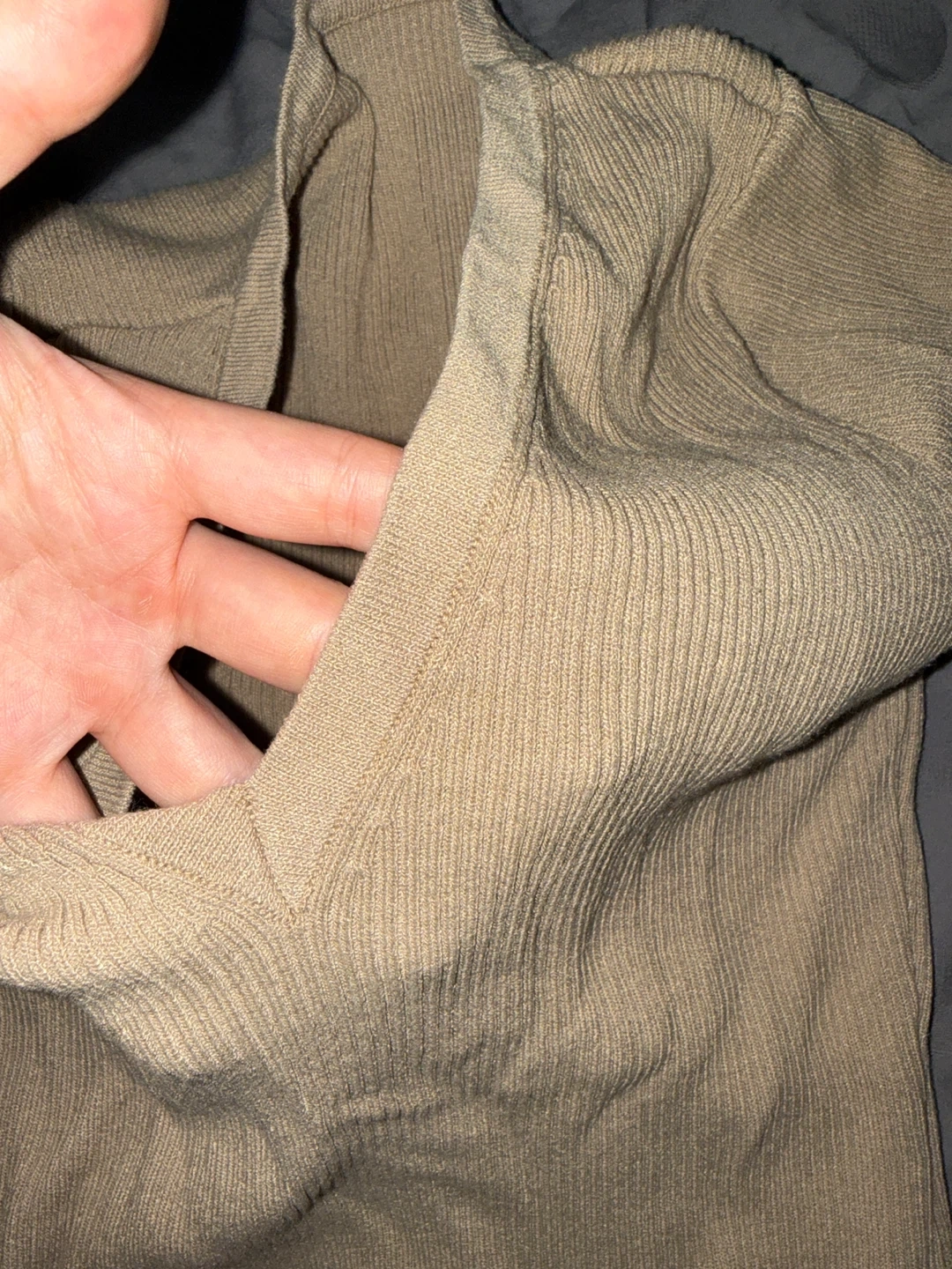 Tan V-neck Ribbed Knit Top