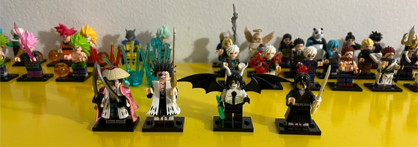 Selling a collection of anime-themed Lego minifigures! These figures are in good condition and would be perfect for any anime or Lego enthusiast. They feature characters from different anime series.