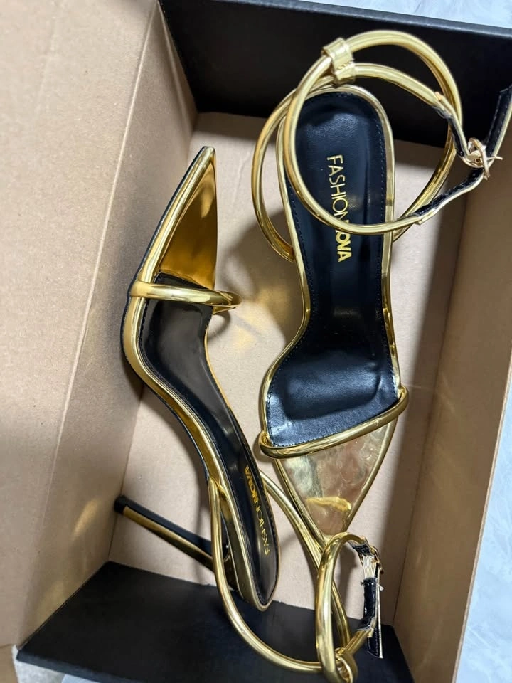 Never worn! Stunning metallic gold heels — perfect for parties, events, weddings or a night out.