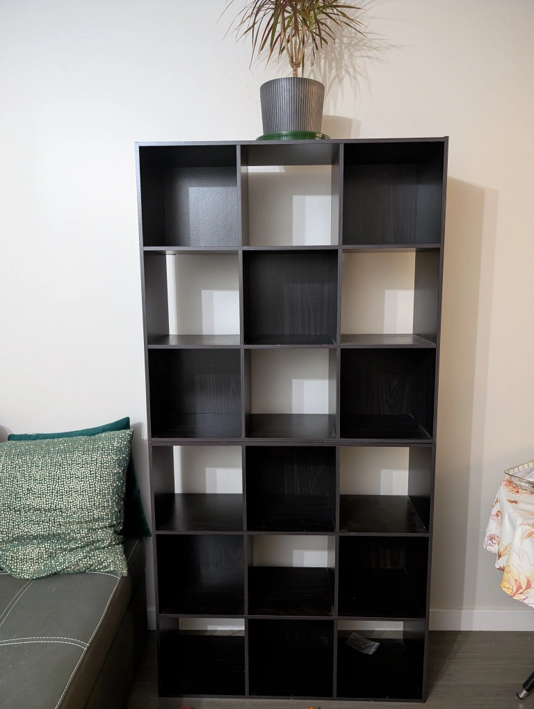 Large black organizer. Can be used as a long one (as on the picture, 6x3cubes -182cm x 91cm) or divided in two organizers (3x3 cubes - 91cm x 91cm). It offers ample storage and a great design. Great for books, decor, or storage.