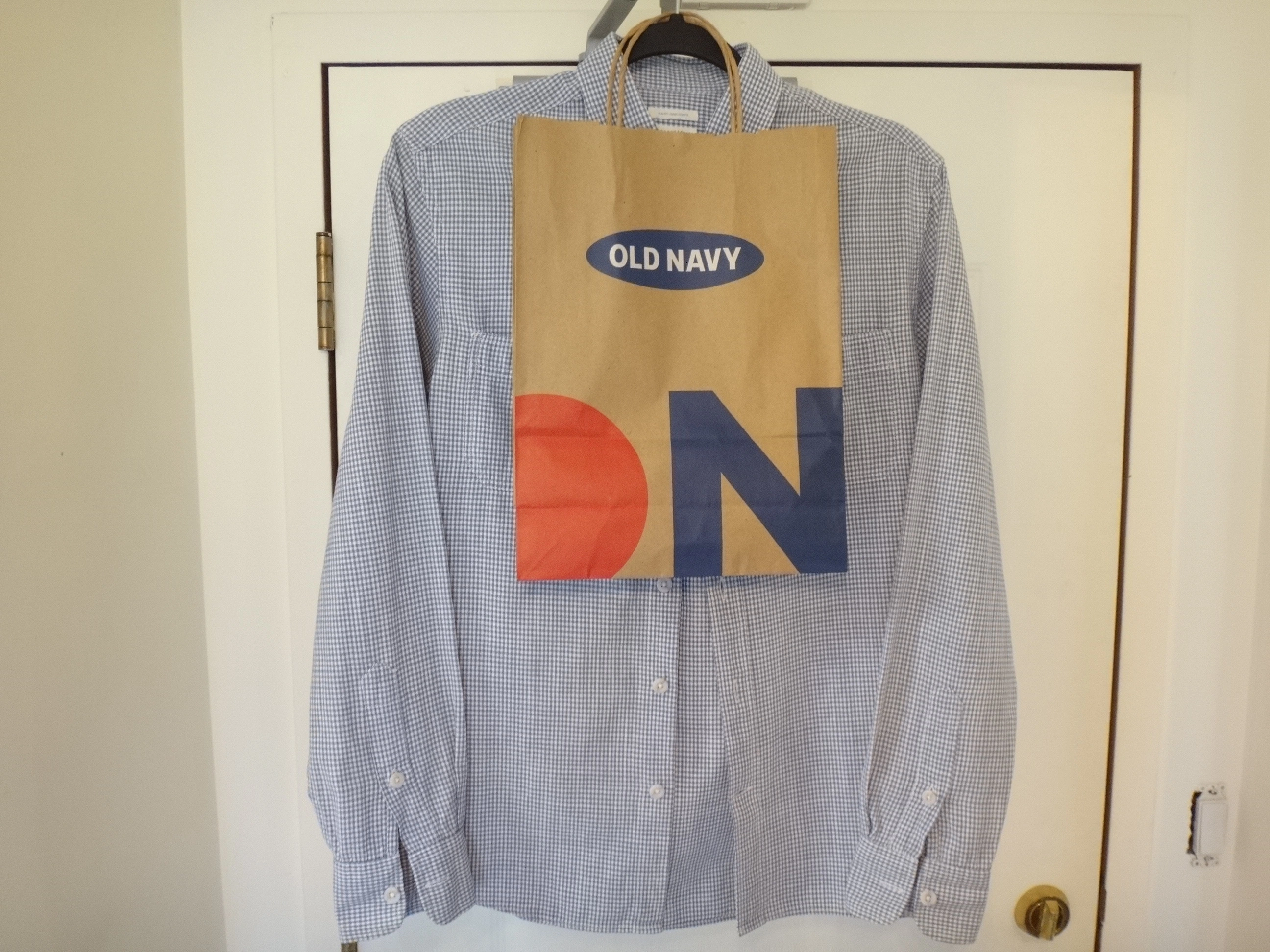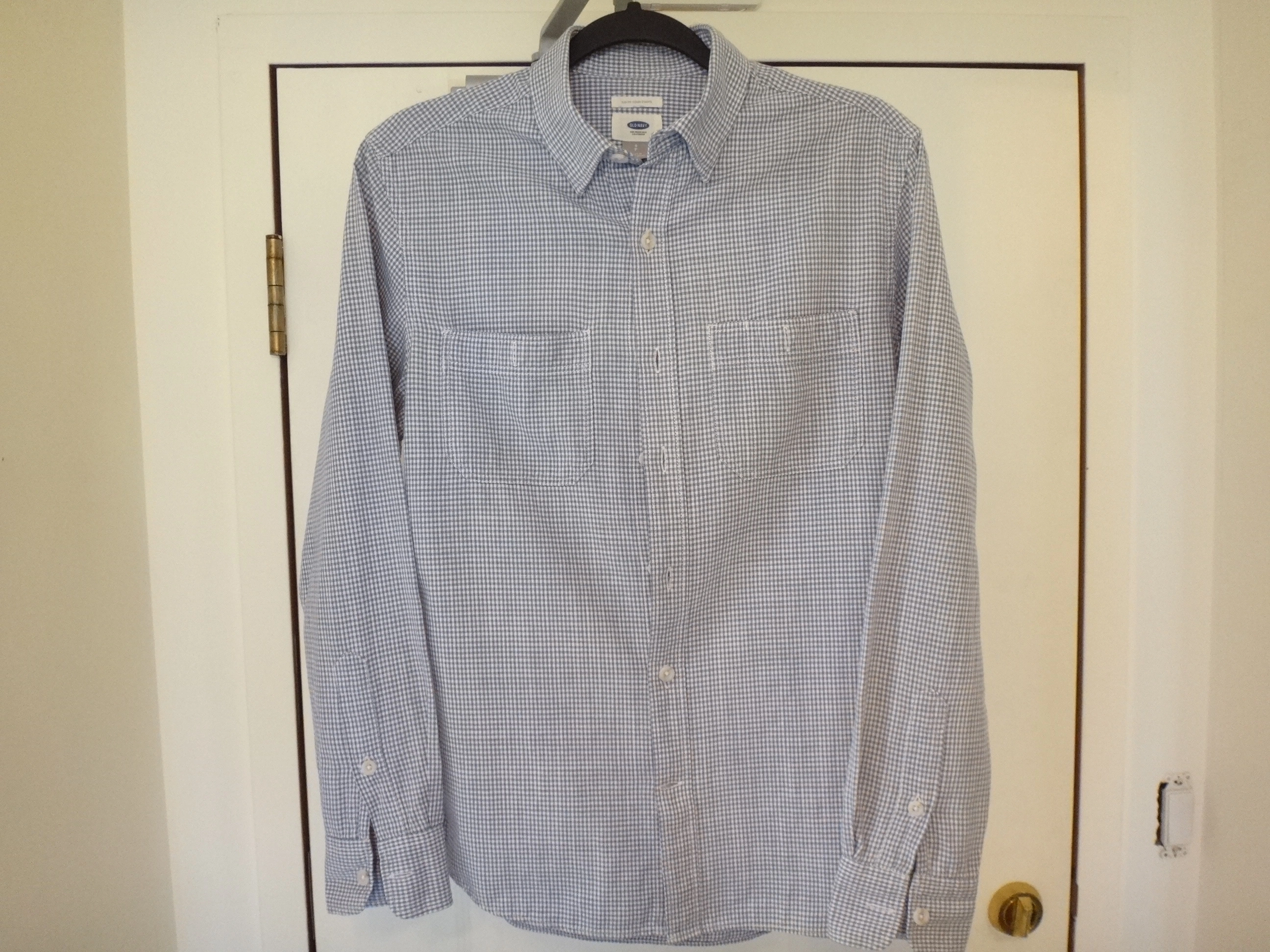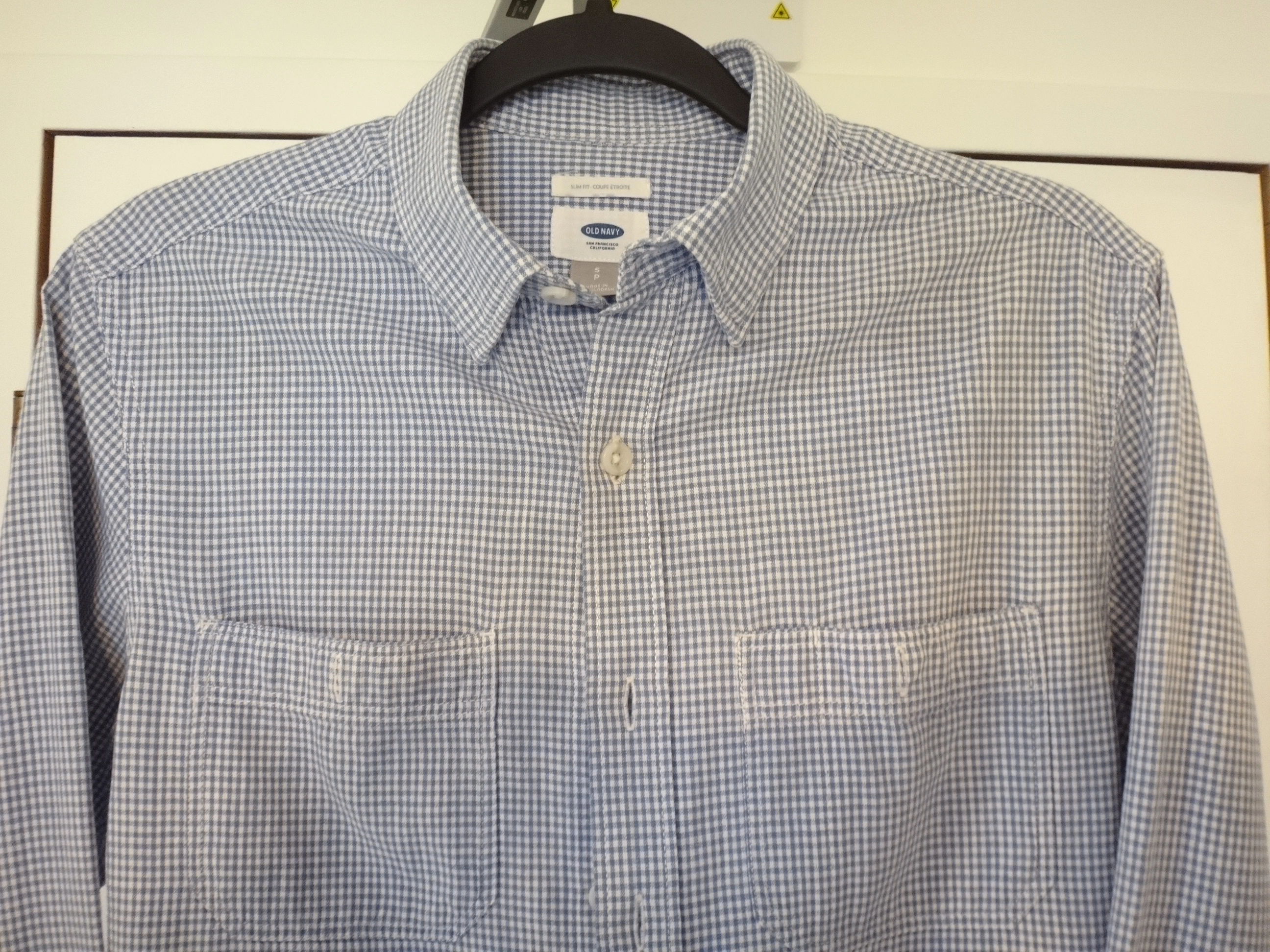 OLD NAVY Men's Slim Fit Light Blue & White Checkered Double Pocket Shirt.