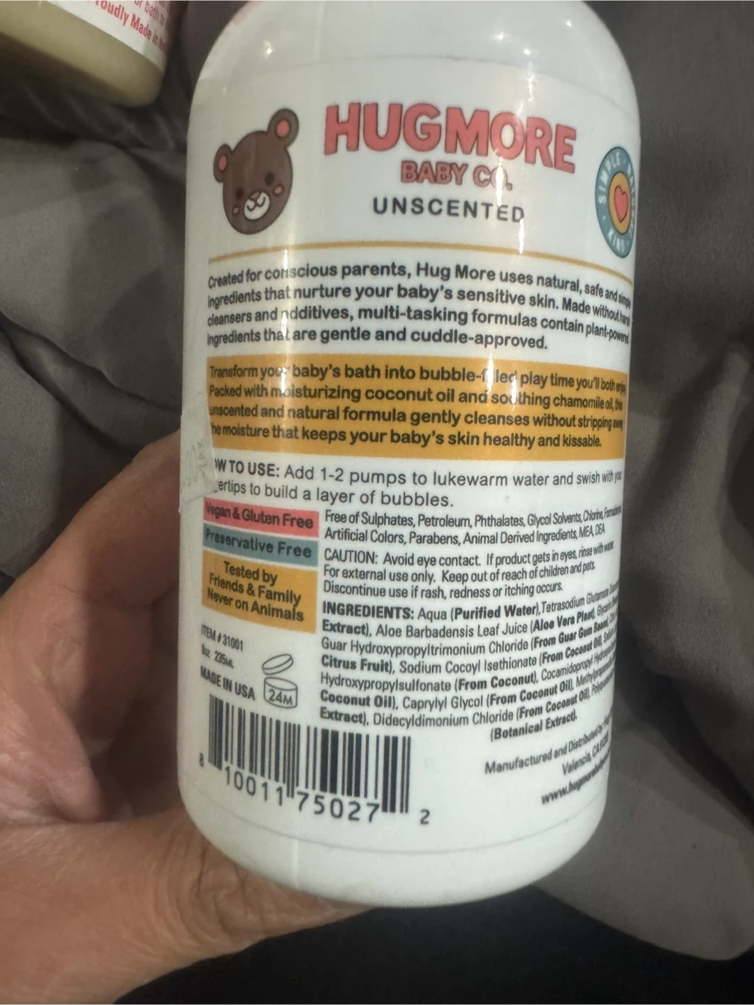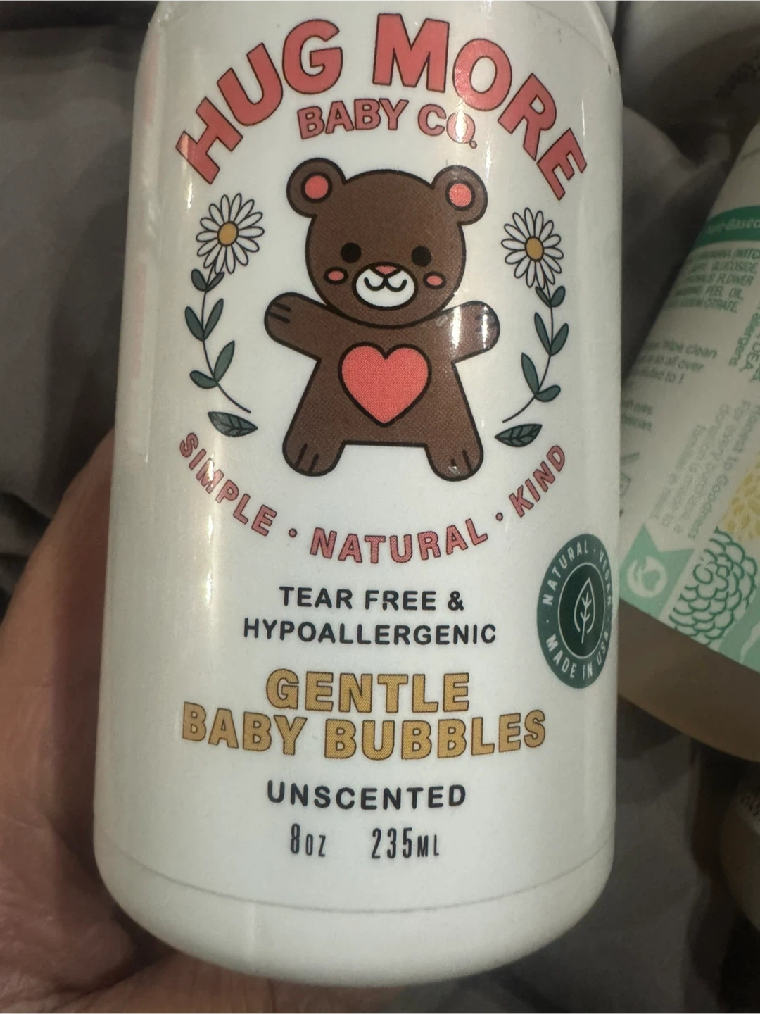 Hug More Baby Co. Unscented Gentle Baby Bubbles. Tear free & hypoallergenic formula. 8oz / 235mL bottle.