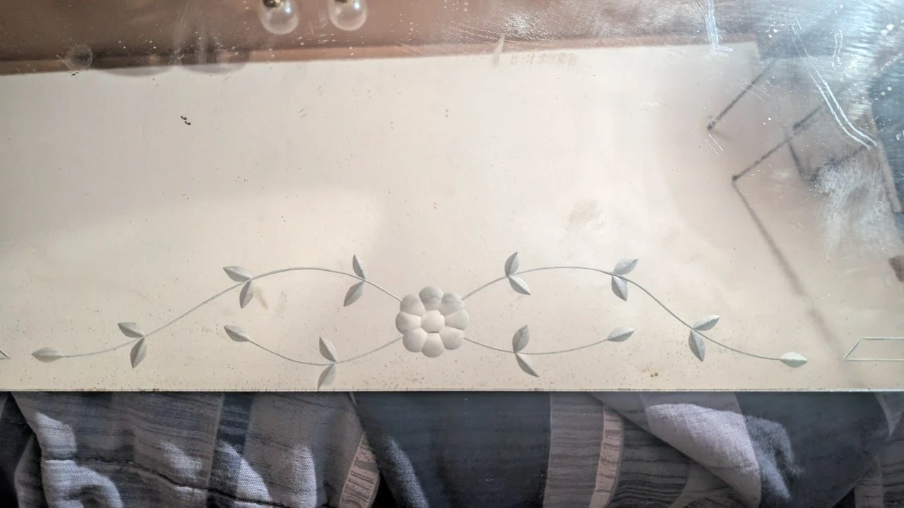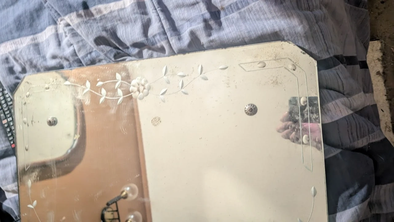 This is a beautiful bevelled edge, etched floral design mirror that is over 100 yrs old.
