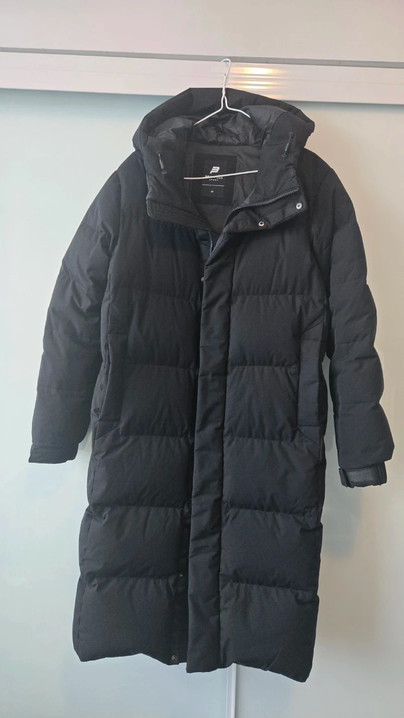 Beanpole Sport down puffer parka coat in black. It's a long puffer jacket with a hood. This coat is great for staying warm during colder months!