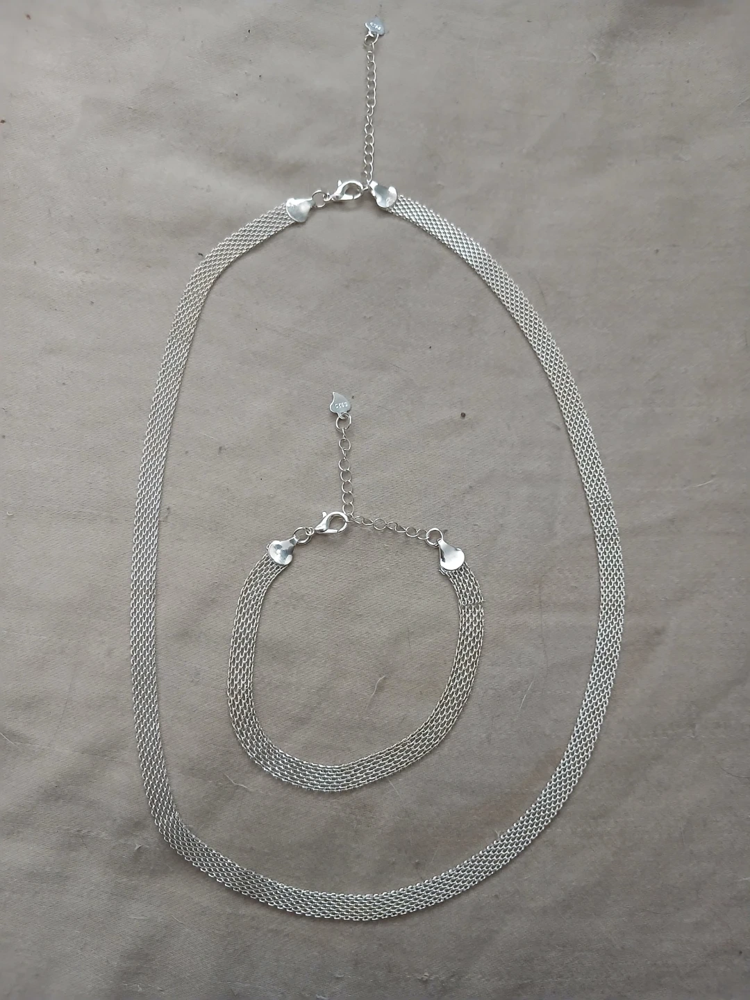 Brand new 925 silver woven mesh necklace and bracelet set. Cash only. Pick up or meet up in public place.