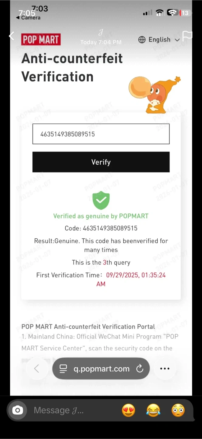 Selling a cute Pop Mart Monster fluffy plush! It's in great condition and has been verified as genuine by Pop Mart. It's a super fun and unique addition to any collection