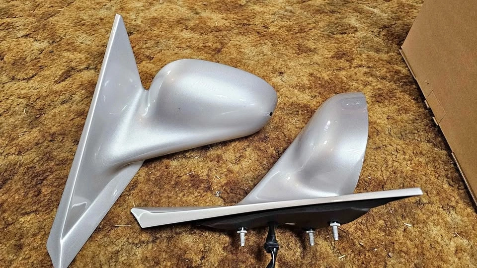 Original side view mirrors from a 2001 Ford Mustang, fits 1999-2004 models. Professionally prepped and painted silver to match the car. Came off a very low mileage car (30k). Complete units with power motors, original OE Ford parts. Ready to bolt on. One mirror has a small chip on the driver's side.