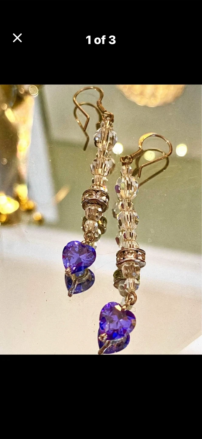 💙Swarovski Crystal Long Cobalt Blue Heart Charm Dangle Earrings!💙 3 inches! New!💙
