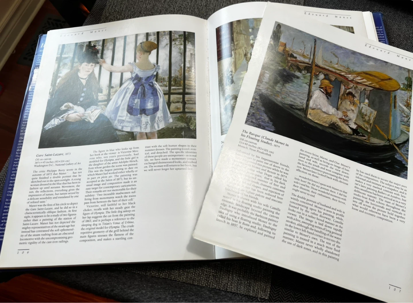 A comprehensive book on Impressionism by Belinda Thomson and Michael Howard. Features works by artists like Monet and Berthe Morisot. Includes detailed analyses and reproductions of famous paintings. One page has been ripped out, but it is included.
