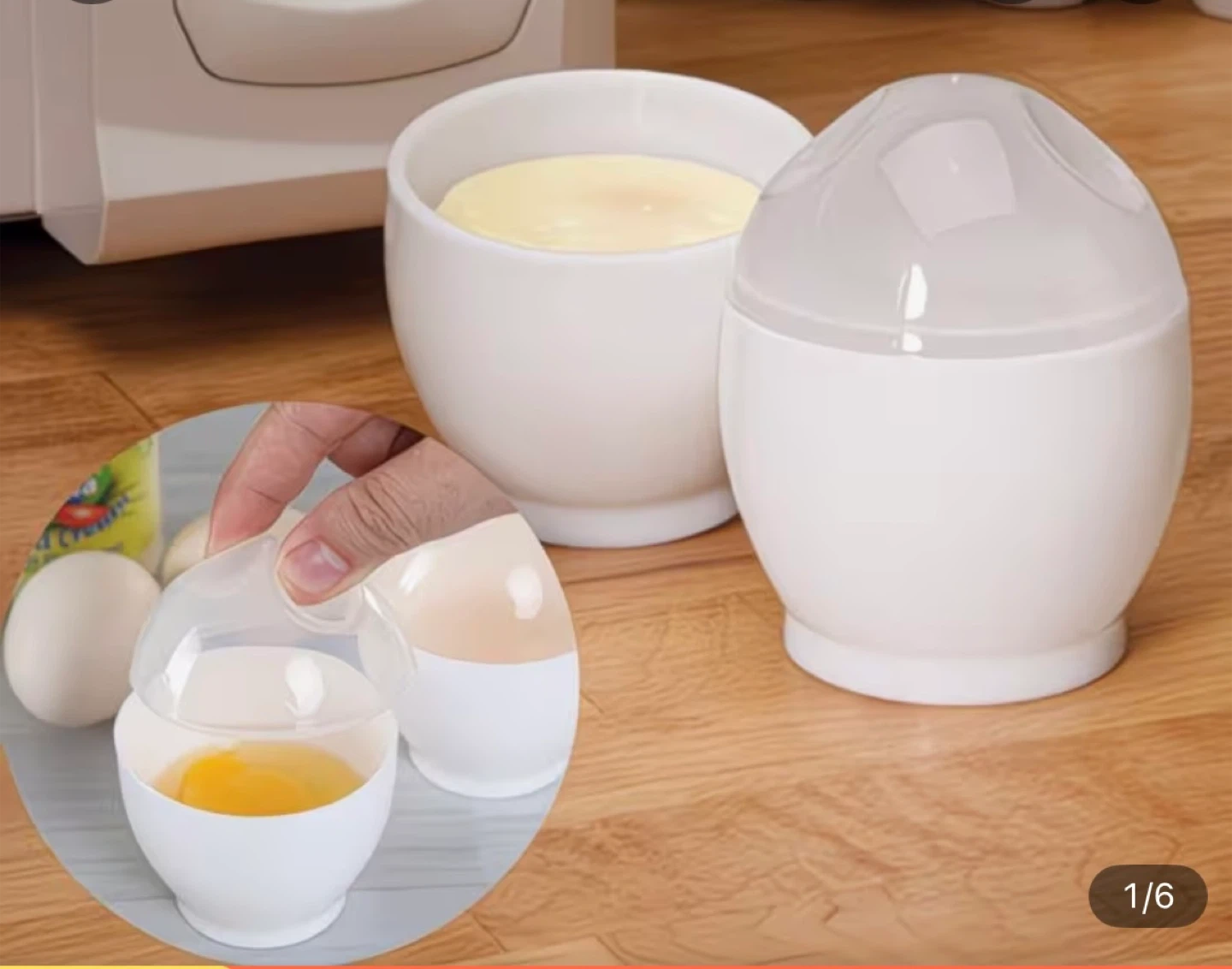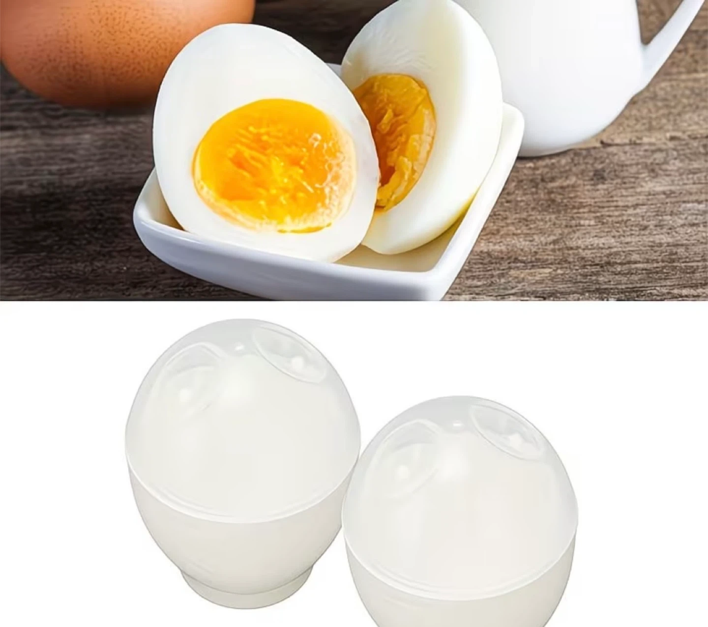 This set includes two white egg cookers with transparent lids. They're designed to make perfect boiled or poached eggs. Made from durable material for long-lasting use. Perfect for Steaming And Boiling Eggs in The Microwave for Tasty Breakfasts And Lunches
