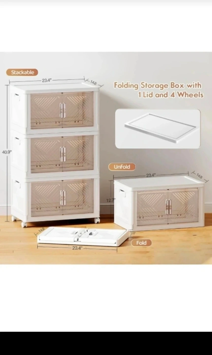 Storage Bins with lid, 76 Qt Foldable Stackable Storage Containers with Wheels, Clear Plastic Collapsible Storage Bins with Door and Lid, Closet Organizers and Storage Box for Home (3 Tier)pick up Edmonton Clareview cash no transfers